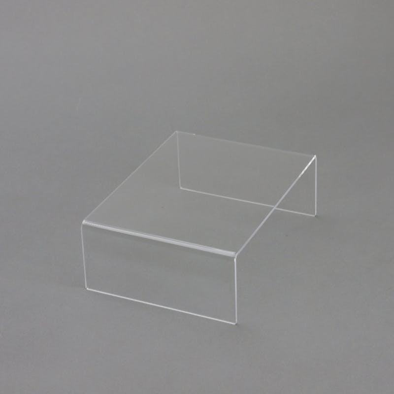 アクリル樹脂製のコの字型ディスプレイです。店頭やショーケースでのスペースの有効活にオススメです。立体的にディスプレイすることでより商品が魅力的に。透明度抜群で品質に自信あります!