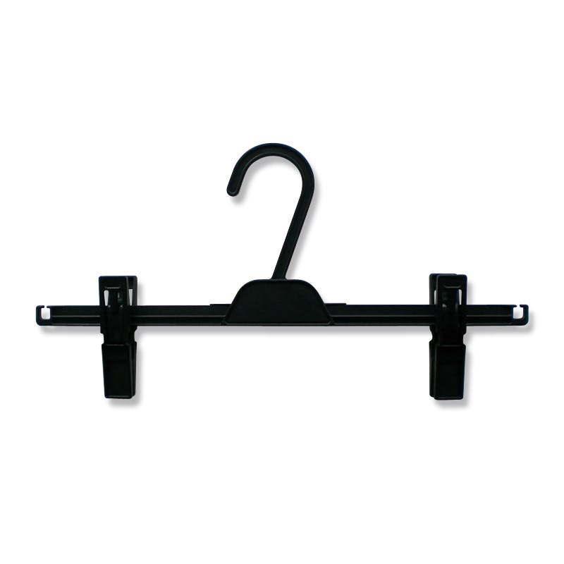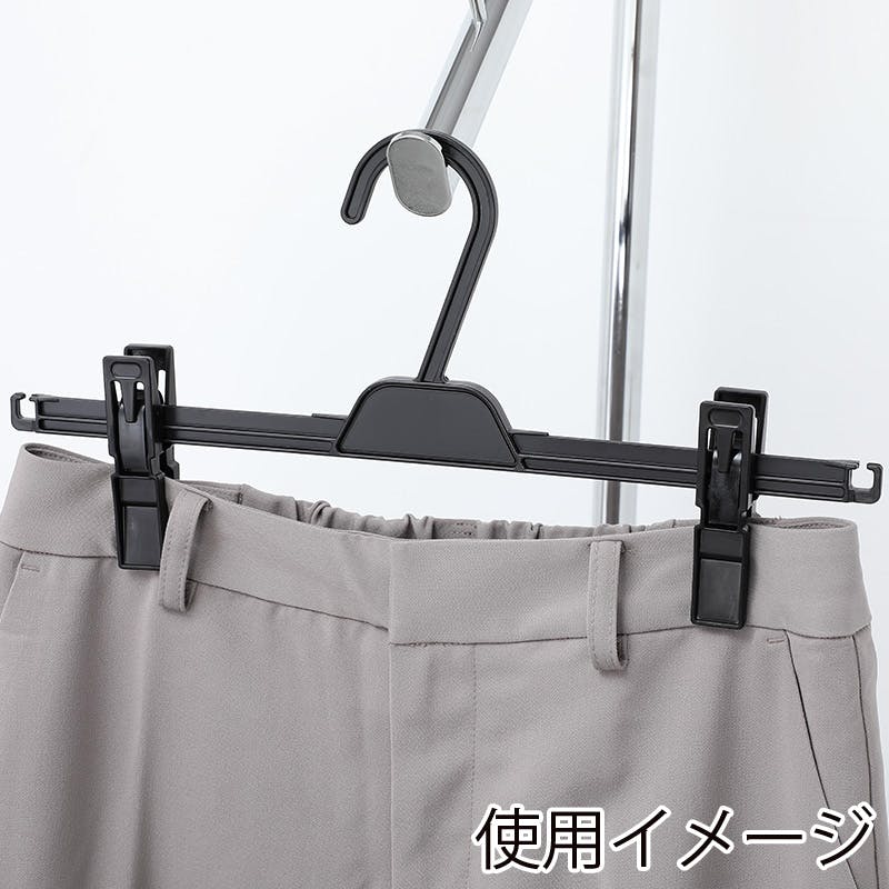 クリップタイプのボトム用ハンガーです。滑り止めのウレタンがしっかり挟むため、スカート・パンツ等をキープします。掛ける衣服の幅に応じて、クリップを左右に移動させられます。フックは回転不可です。●カラー:ブラック