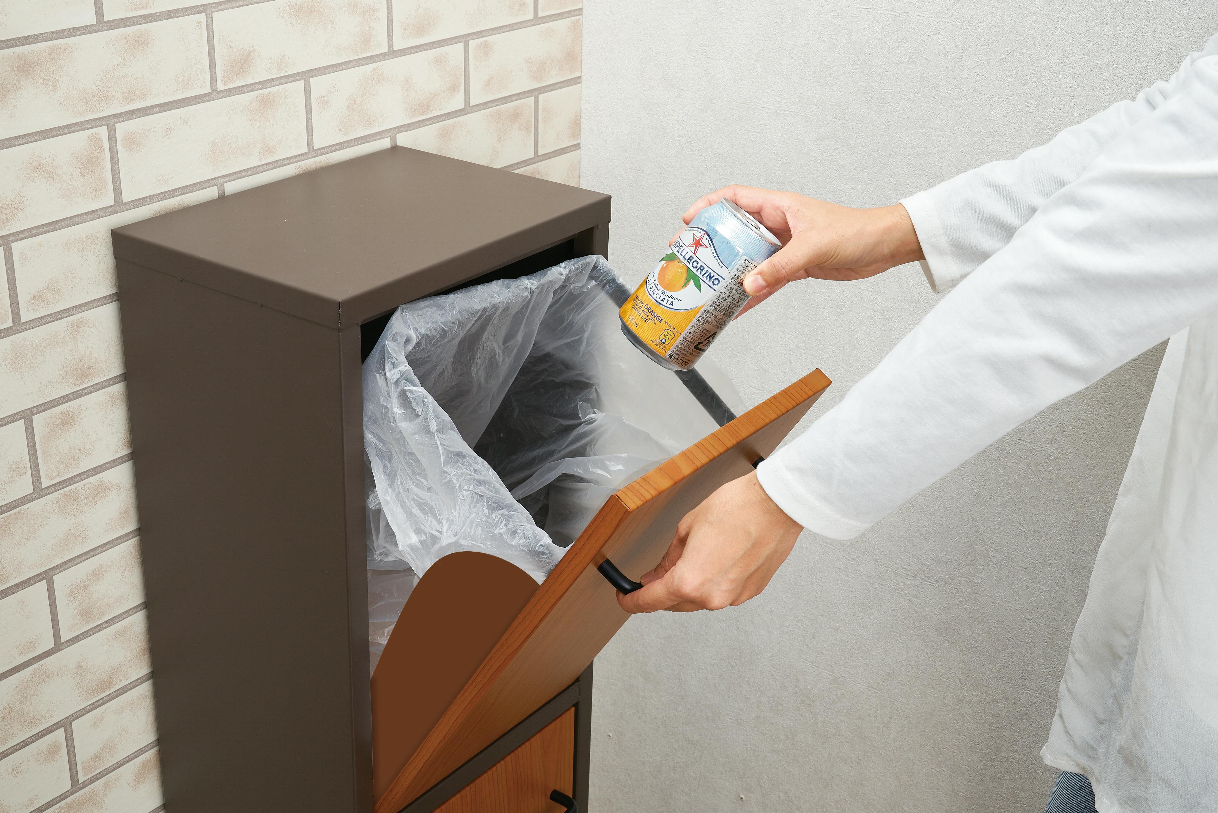 20リットルのゴミ袋がちょうど入るサイズ。キャスター付きなのでお掃除ラクラク(ロック付き)。ハンドルはタオルハンガーとしてもお使いいただけます。