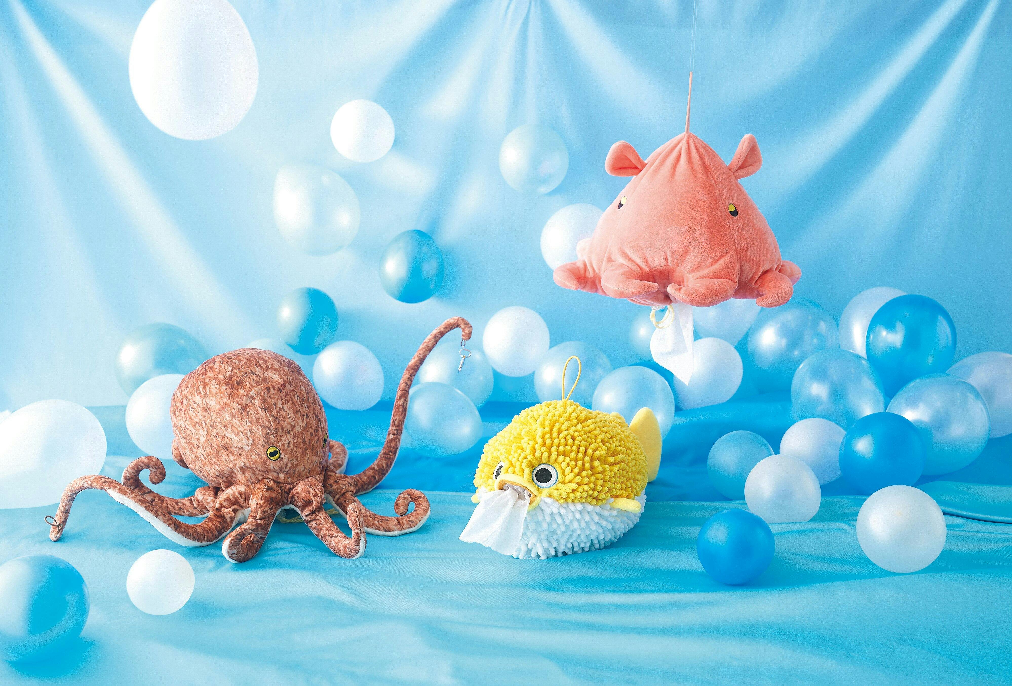 水族館の人気のいきものロールティッシュケースゴムひも仕様なのでふわふわ動きます