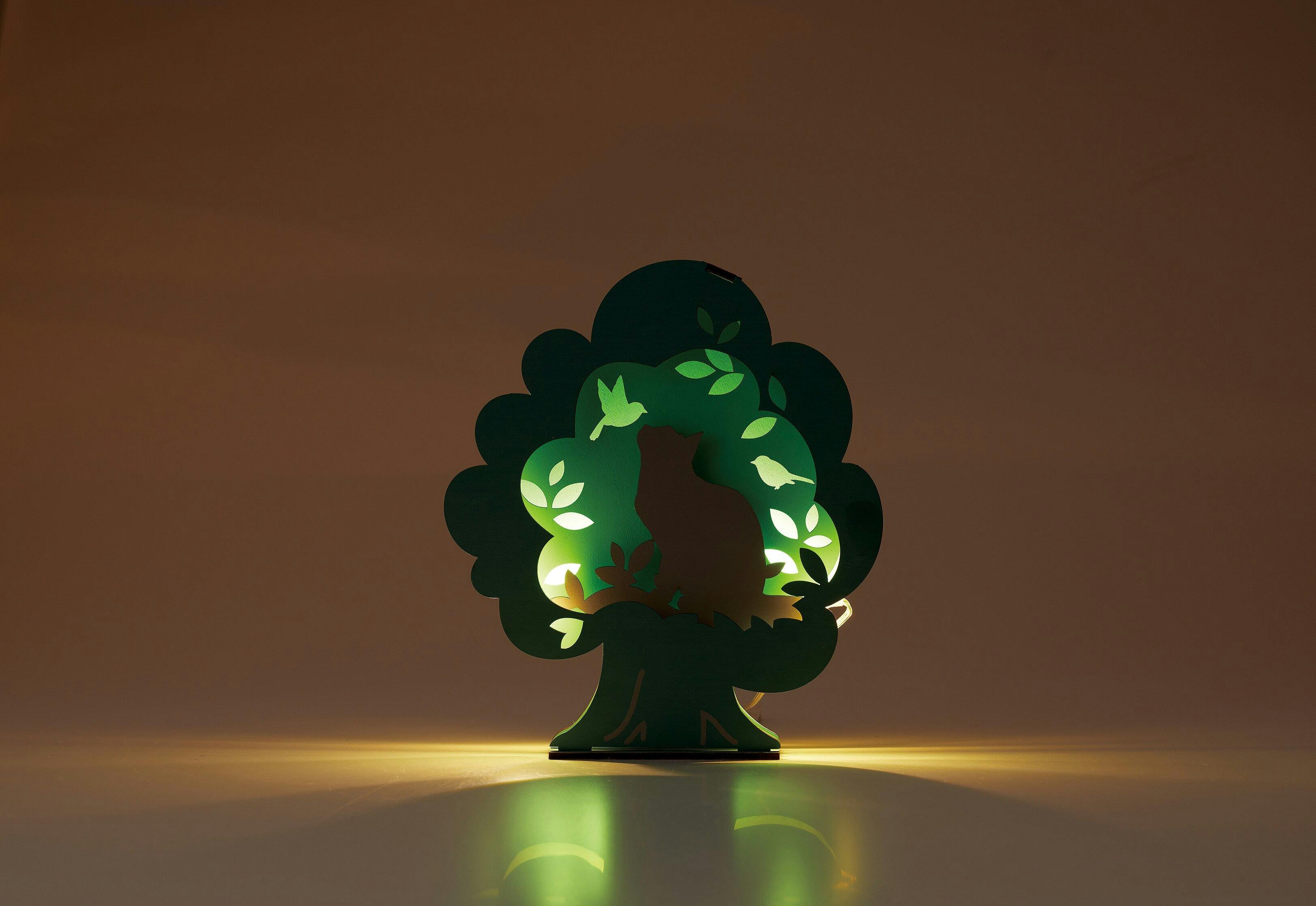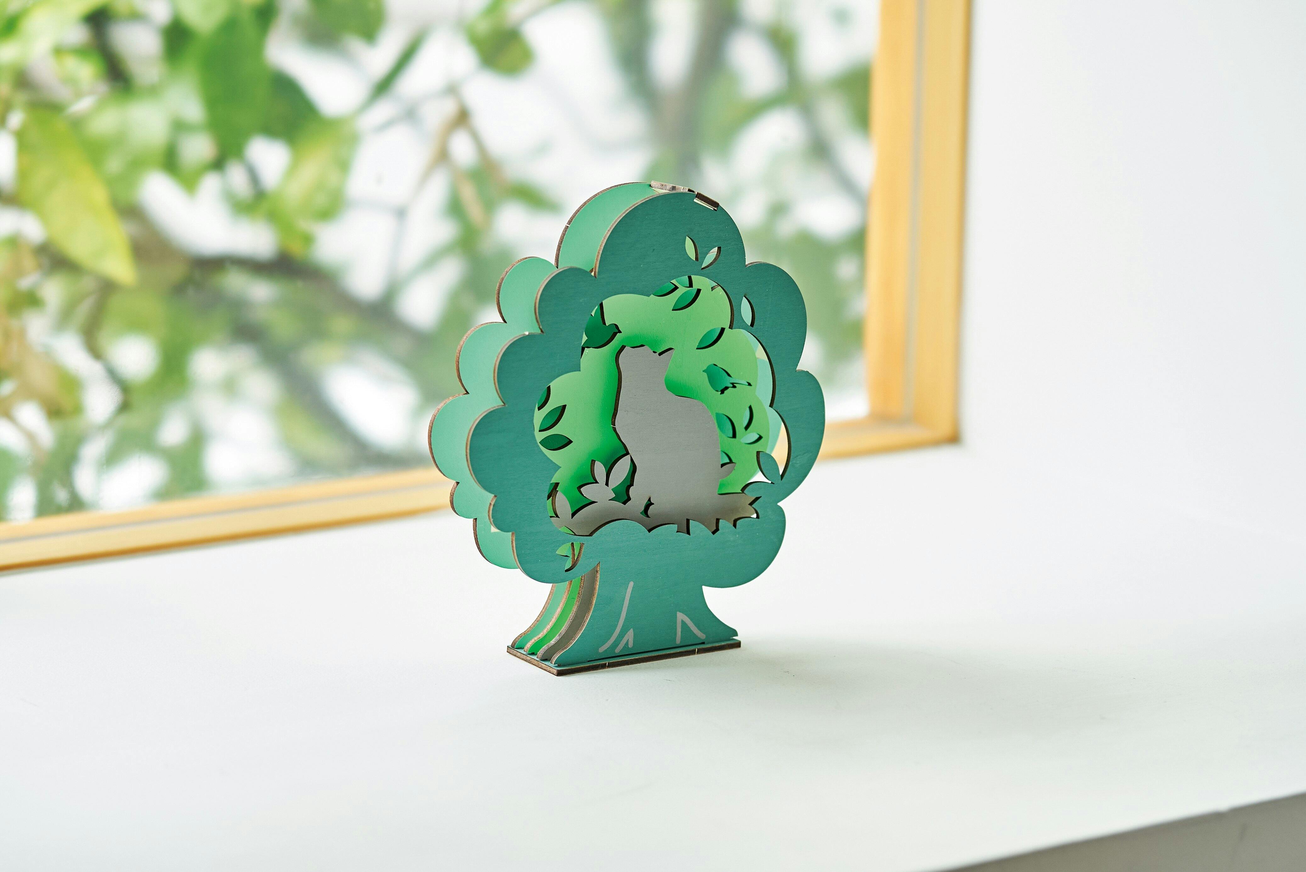 木製パズルを組み立てるとかわいいランプに変身組み立てて楽しい、飾って楽しいネコのシルエットパズルシリーズ