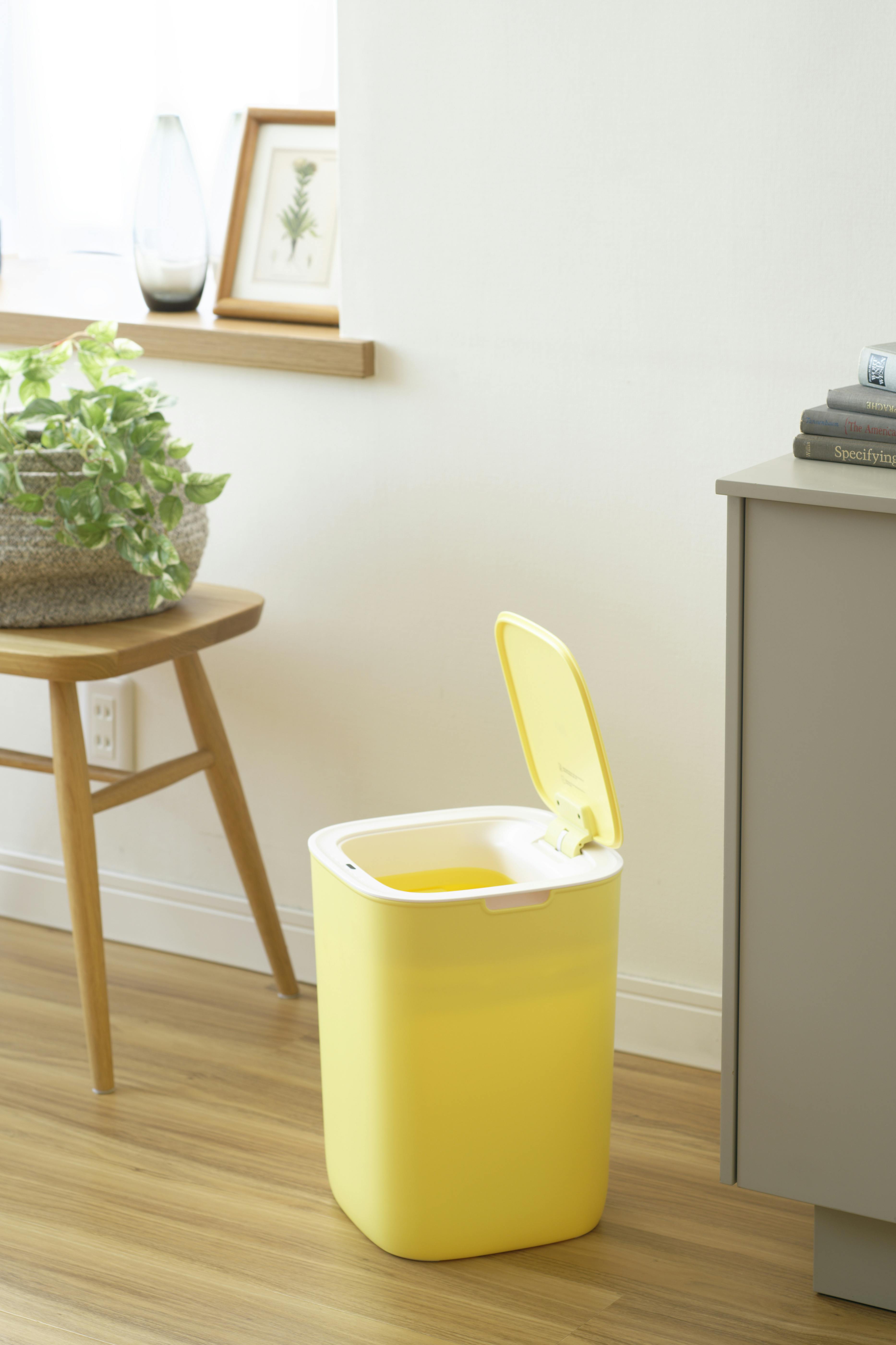 足元にあると便利なスクエアサイズのセンサー式ゴミ箱。コンセント不要でベルト付きなので持ち運びもラクラク。フタの裏のシリコンシーリングがニオイ漏れをシャットアウト。