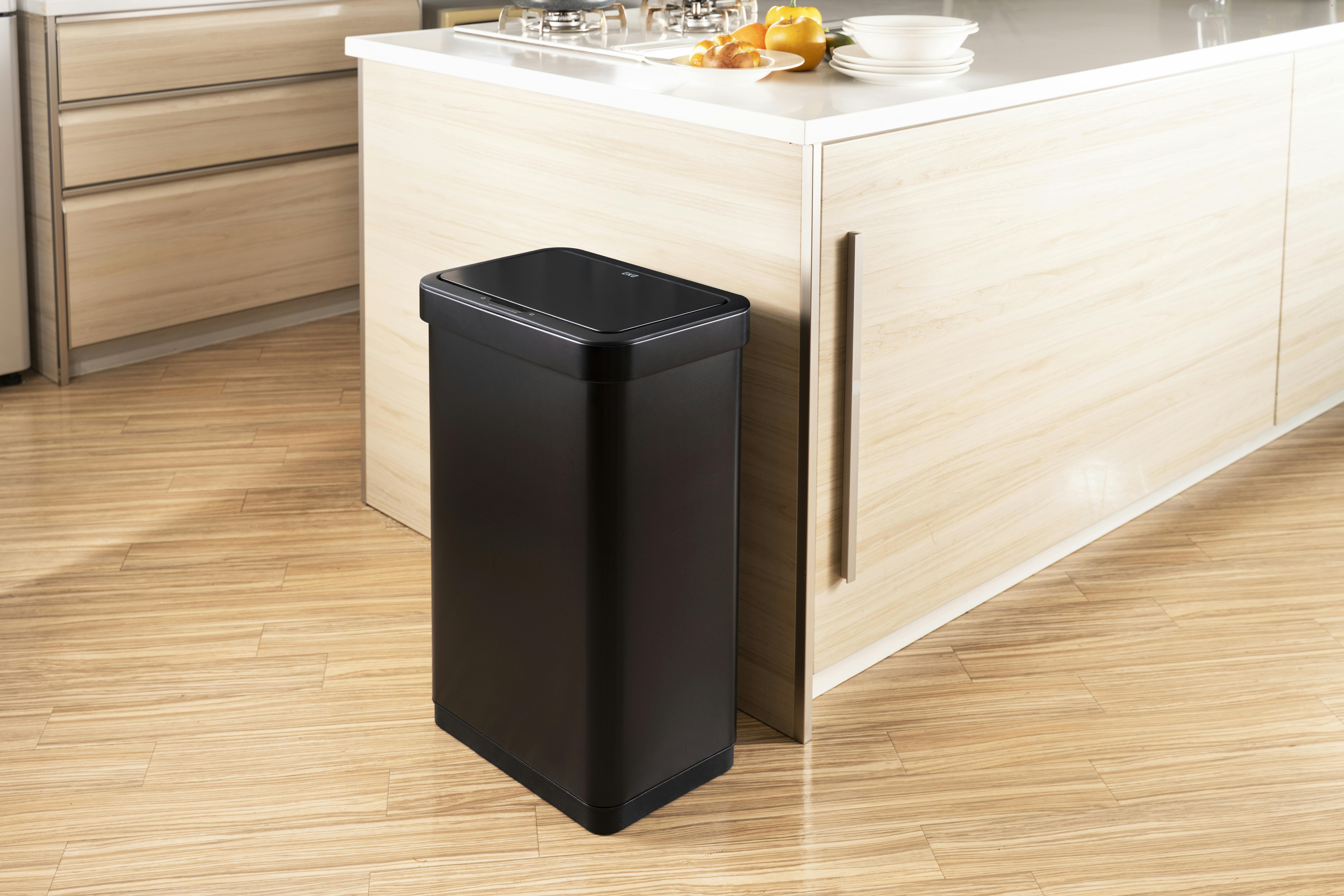 EKOステンレスゴミ箱のベストセラー〈EK9262ホライゾン〉のアップグレードモデル。50Lと大容量ながらアルカリ単3電池4本で駆動する省電力センサーゴミ箱。本体表面はコーティング加工がされているので指紋や汚れが付きにくい仕様になっており、お手入れがしやすいです。