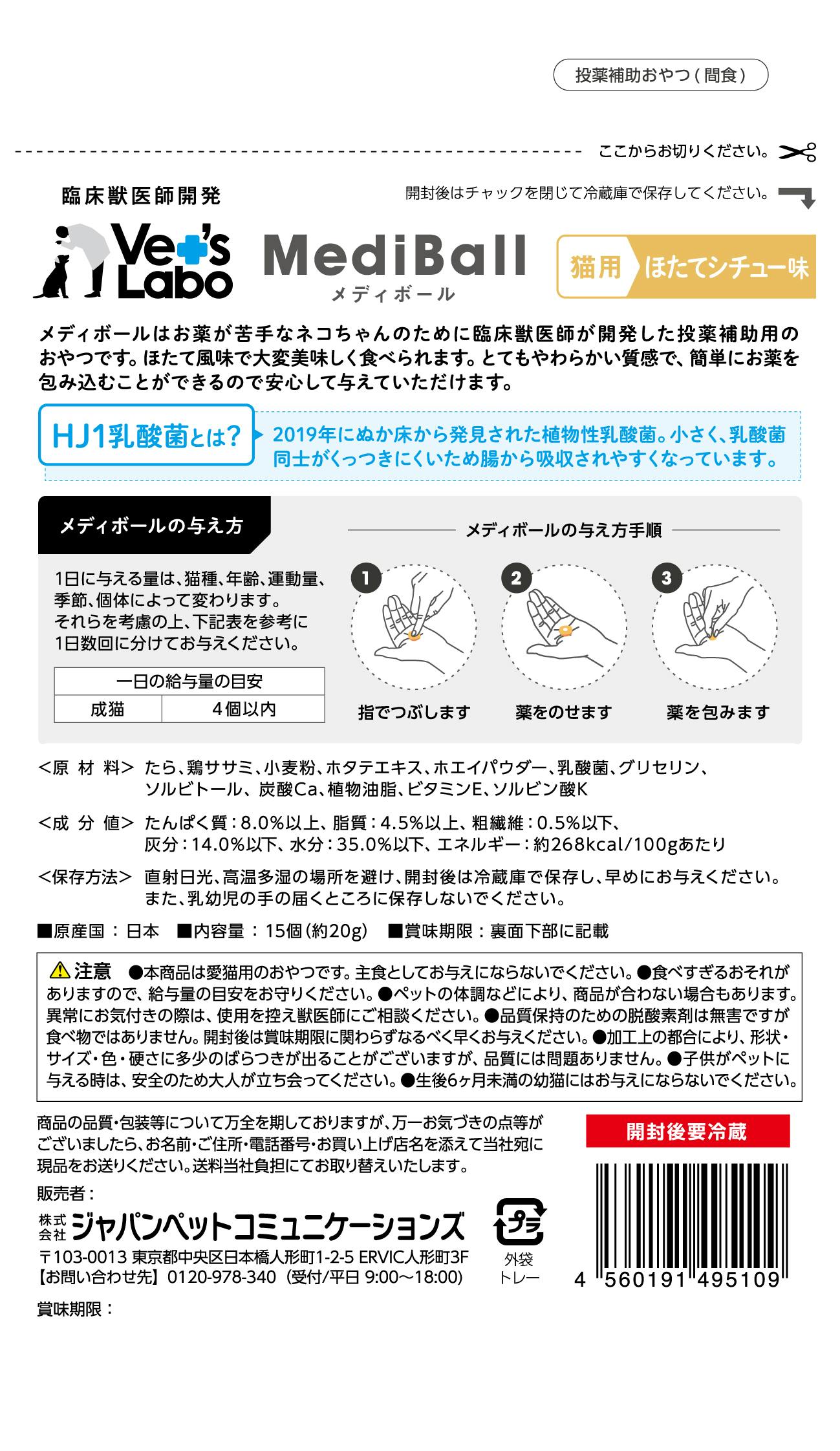 ベッツラボ メディボール 猫用 ほたてシチュー味 32999106【別送品】