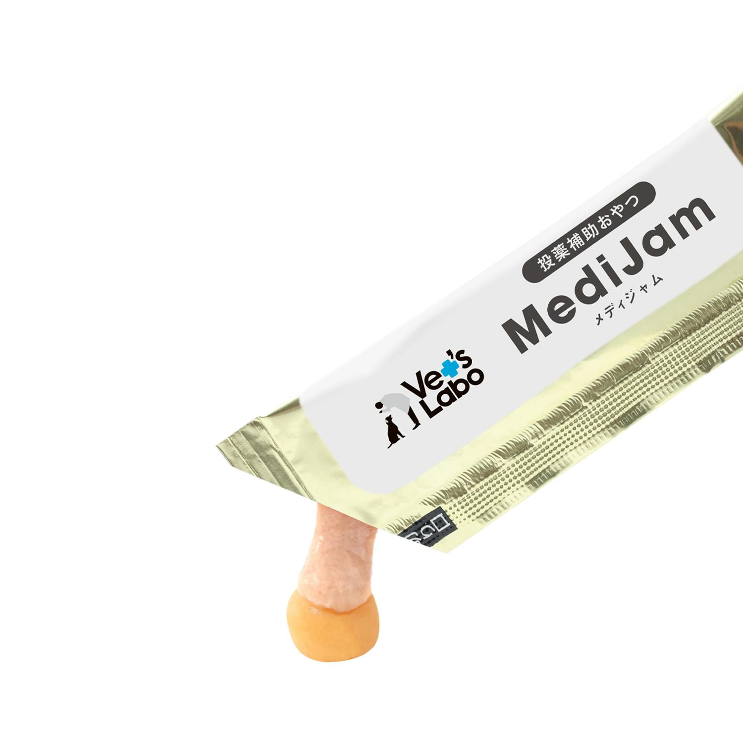 メディジャムは粉薬や、何かに包み込んでお薬を食べることが苦手なネコちゃんのために臨床獣医師が質感と素材を追求して開発したグレインフリーの投薬補助用おやつです。かつおのみをタンパク源としているので、アレルギーが気になるネコちゃんにも安心して与えられます。