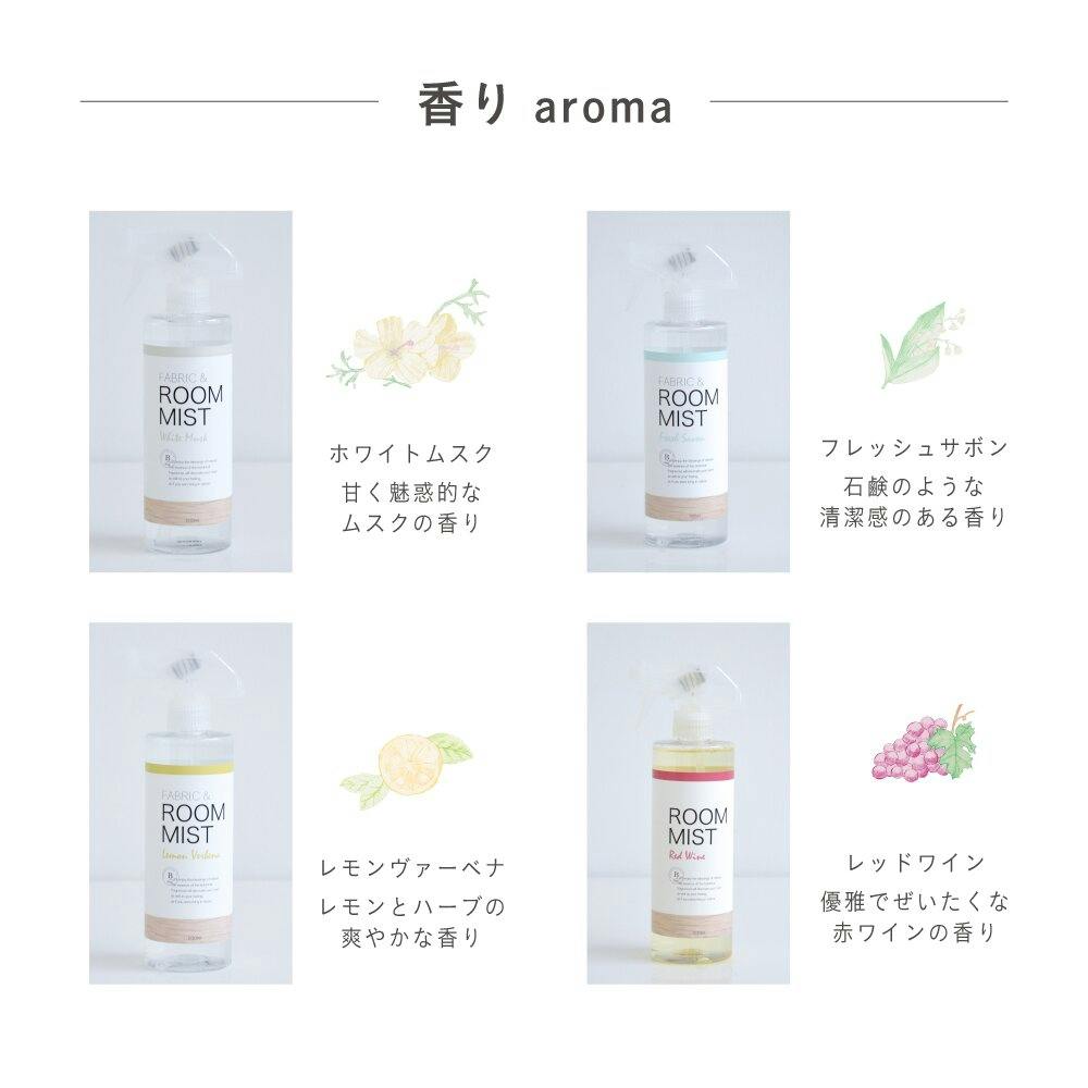 布製品・衣類&室内用は、ホワイトムスク・フレッシュサボン・レモンヴァーベナ