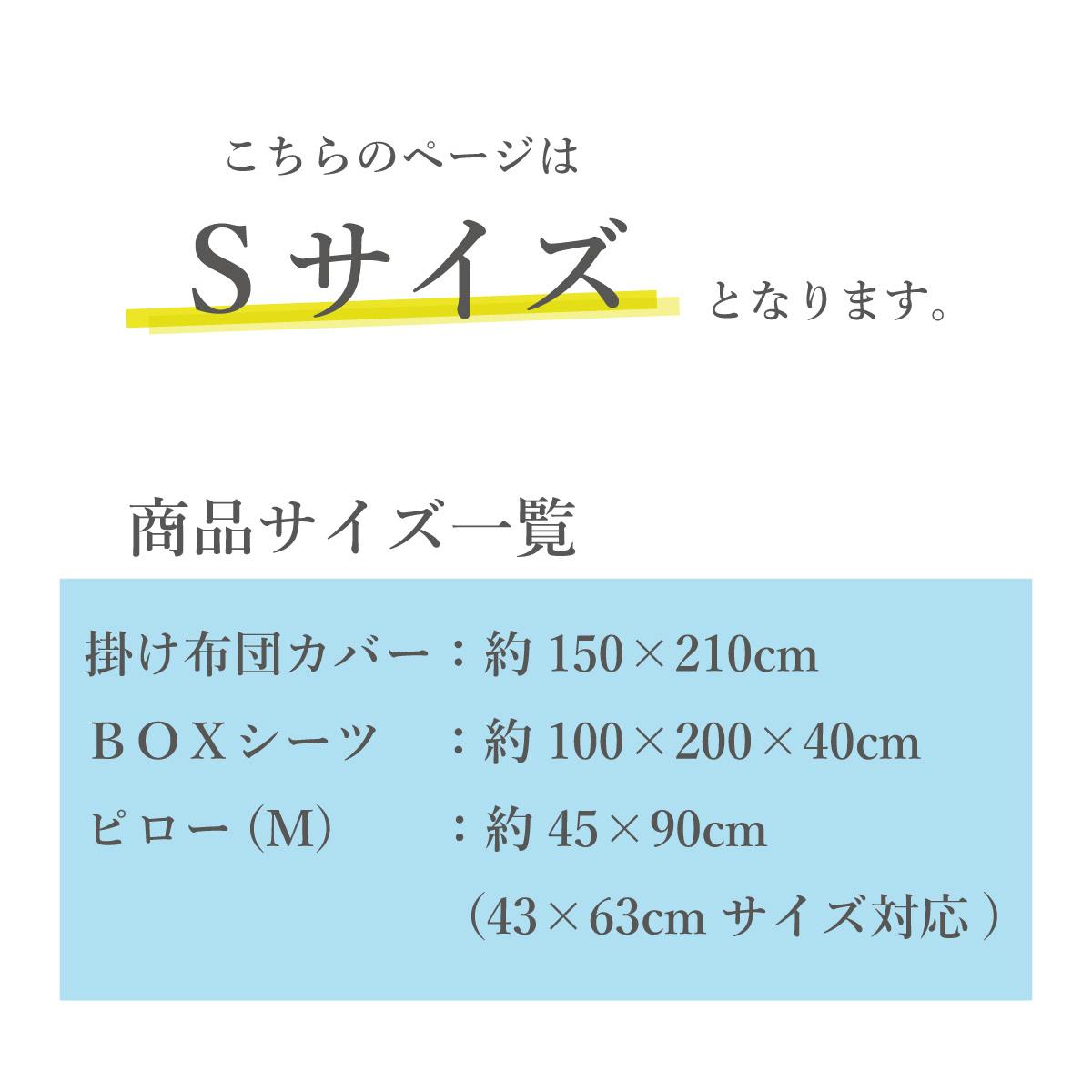 掛布団カバー:150×210cm、BOXシーツ:100×200×40cm、枕カバー:45×90cm(43×63cm対応)