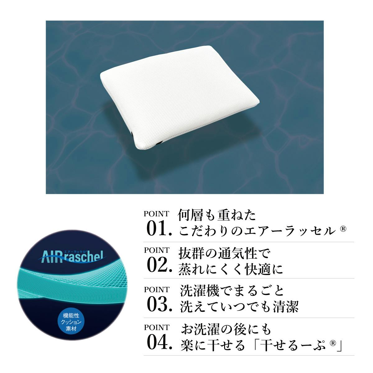 枕本体には、干せるーぷがついているので干すのも簡単です。通気性がいいので乾燥も短時間。