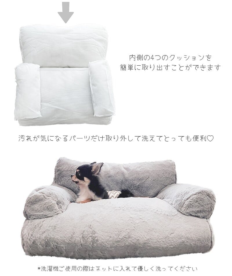 中綿たっぷりで弾力のある寝心地抜群のふわふわソファーベッド☆ひじ掛けに手を置いてくつろぐ姿がかわいすぎて癒されます!底面にある2か所のチャックから中綿クッションを取り出すことができるとっても便利なベッドです。汚れたらカバーだけ取り外して洗うことができるのでお手入れがとっても楽ちん♪