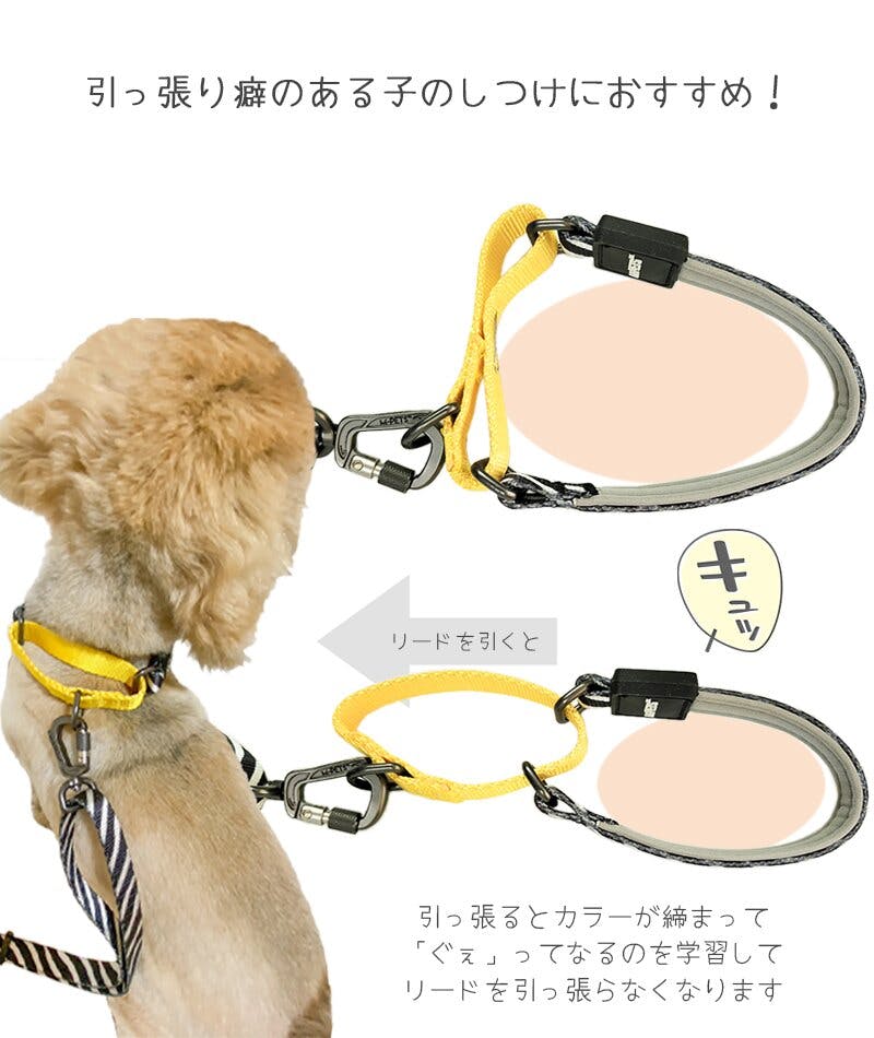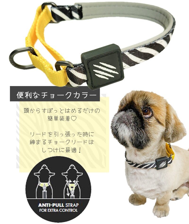 おしゃれなデザインのハーフチョークカラーです。ハーフチョークなので引っ張ると適度に締り首への負担を軽減しながらしつけができる優れものチェーンではなく優しい素材を使用しているので、皮膚や被毛が傷みにくい!パピーからシニアまで安心してお使いいただけます。