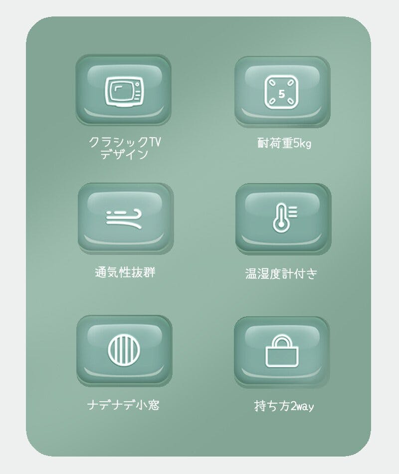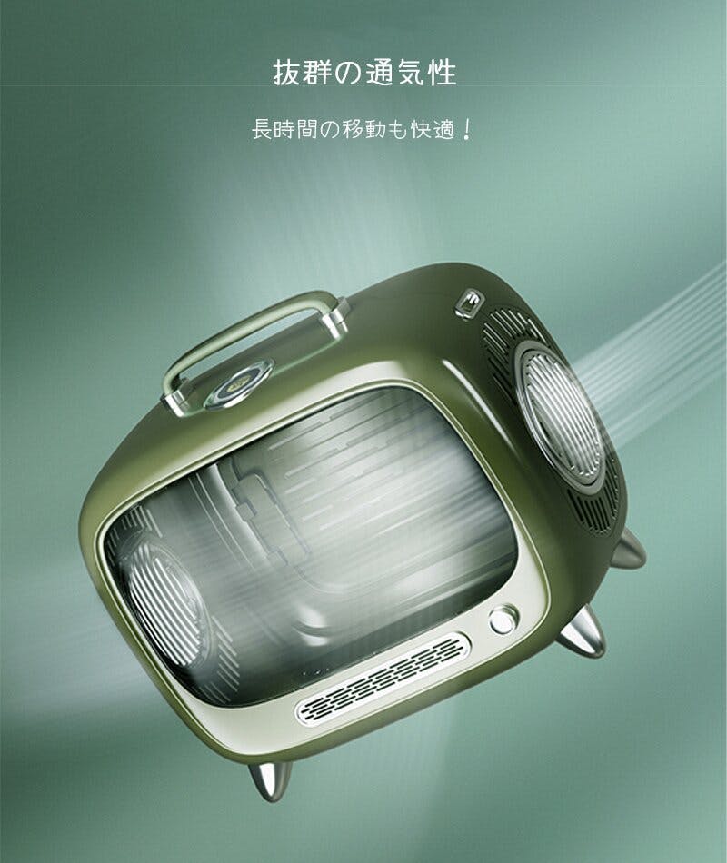 ・背面が大きく開き、わんちゃん・ねこちゃんの出し入れも簡単!・外側からのみ開く側面の小さな開口部から手を入れることができ、ドアを開けずにわんちゃん・ねこちゃんを撫でてあげることができます。緊張しがちなデリケートな子でも安心です。・ショルダーベルトとプラスチックハンドル付きなので、肩掛けも手持ちもどちらでも使えます。・温湿度センサー付きで安心です。(ボタン電池使用)