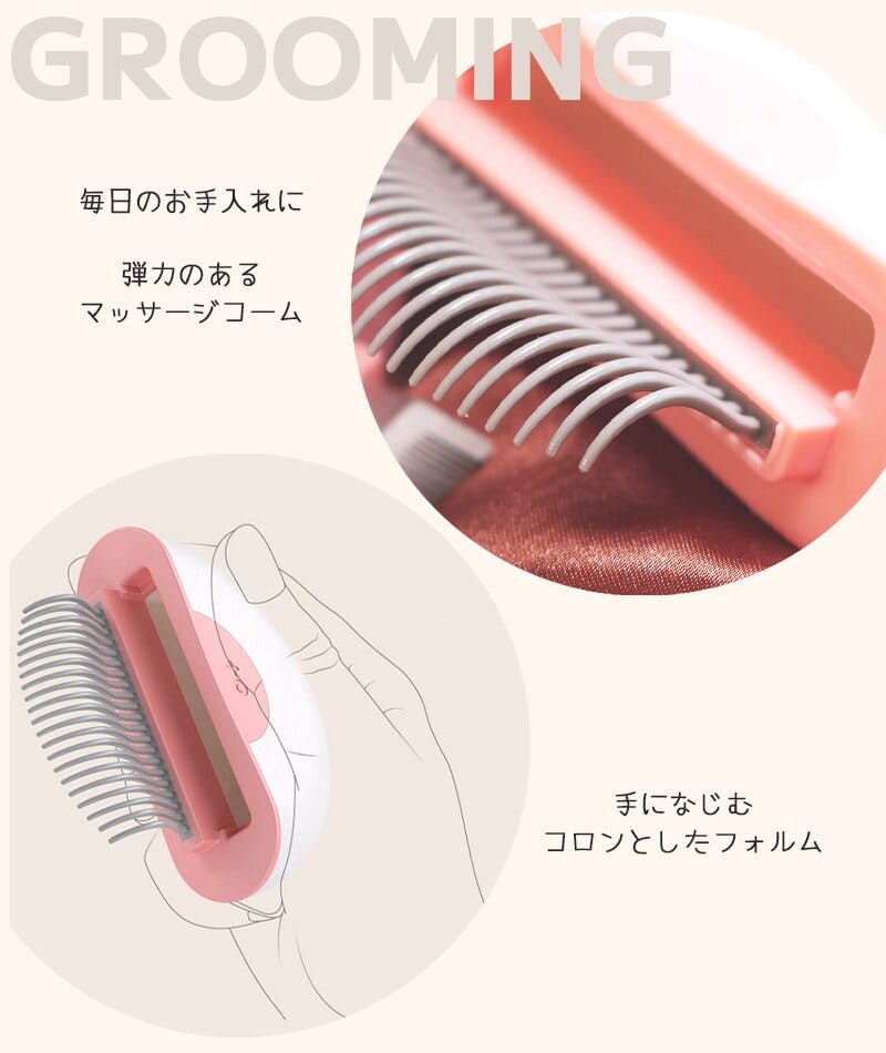 毛を梳きながらマッサージができる柔らかいコームと抜け毛を取り除く硬いコームがセットになった1台4役のグルーミングコーム。蓋をしてしまえるため、持ち運びや収納も簡単です。心地よいマッサージタイムを楽しめます♪