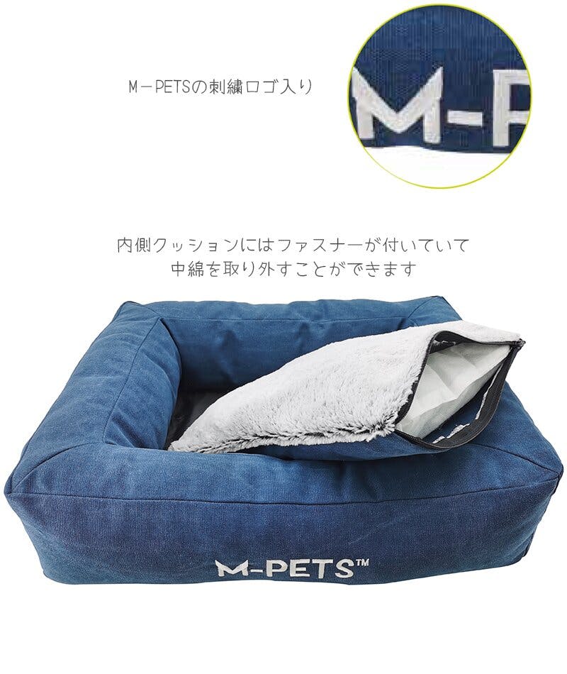 M-PETS EARTH ECOベッド M ブルー クッション性 へたりにくい ハンドル付き 6953182739531【別送品】