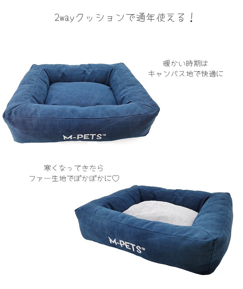 弾力のあるふわふわクッションで寝心地抜群!中綿たっぷりで型崩れしにくい!内側クッションのカバーが取り外しできてお手入れらくらく!寒くなったらファー生地を表にして、暖かい時期はキャンバス地を表にして通年使える便利なベッドです。