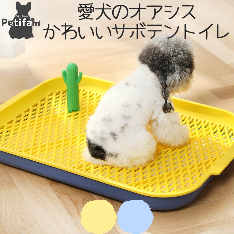 ・インテリアのアクセントとなるデザイン性だけでなく、機能性も兼ね備えた便利でかわいいわんちゃん用トイレ。・モチーフのサボテンは、足をあげておしっこをするわんちゃんのマーキングポールとして、トイレトレーニングに使えます。サボテンは、わんちゃんの癖や体形に合わせて、好きな場所に移動することができます。・メッシュとトイレシートの間には隙間があるため、清潔で衛生的。丸洗いも簡単です。
