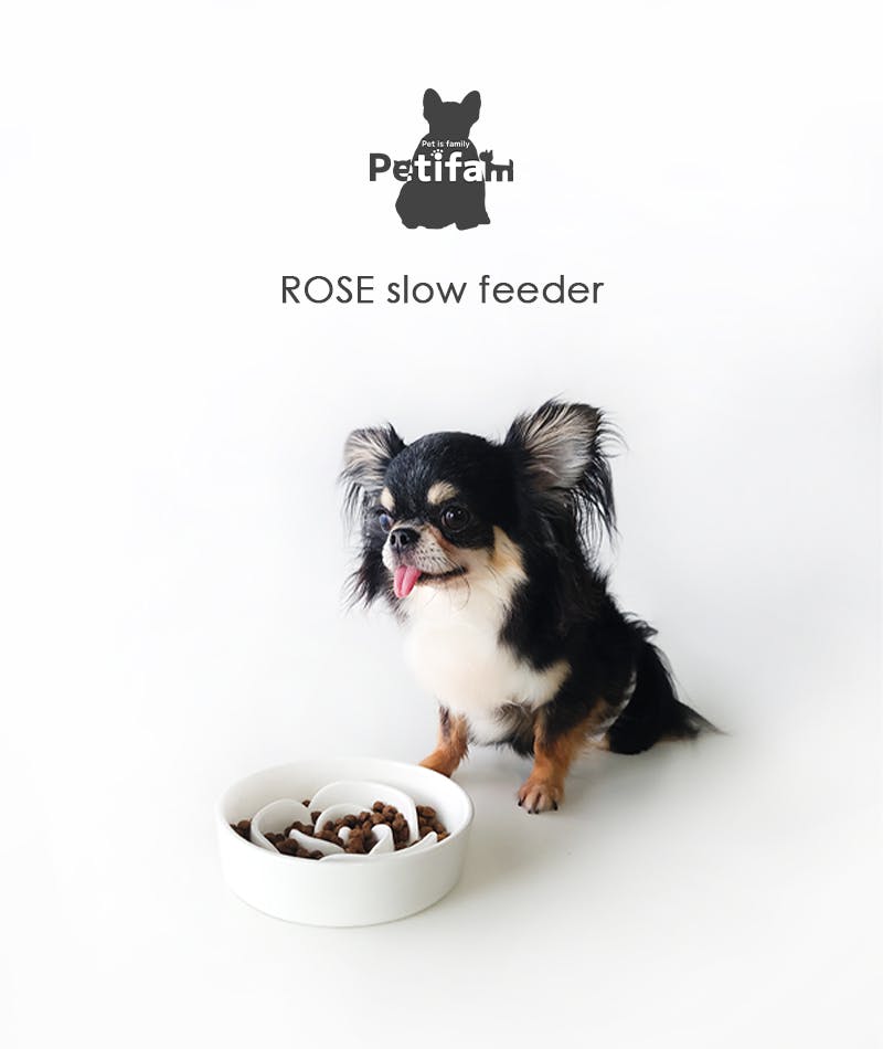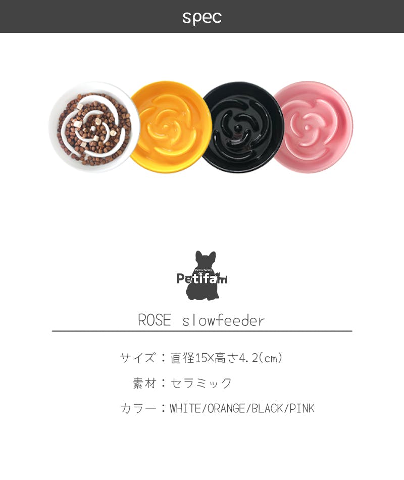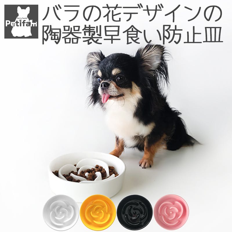 Petifam 陶器製早食い防止皿 ローズ ホワイト 犬猫食器 滑り止め お手入れ簡単 レンジOK 4580756814978【別送品】