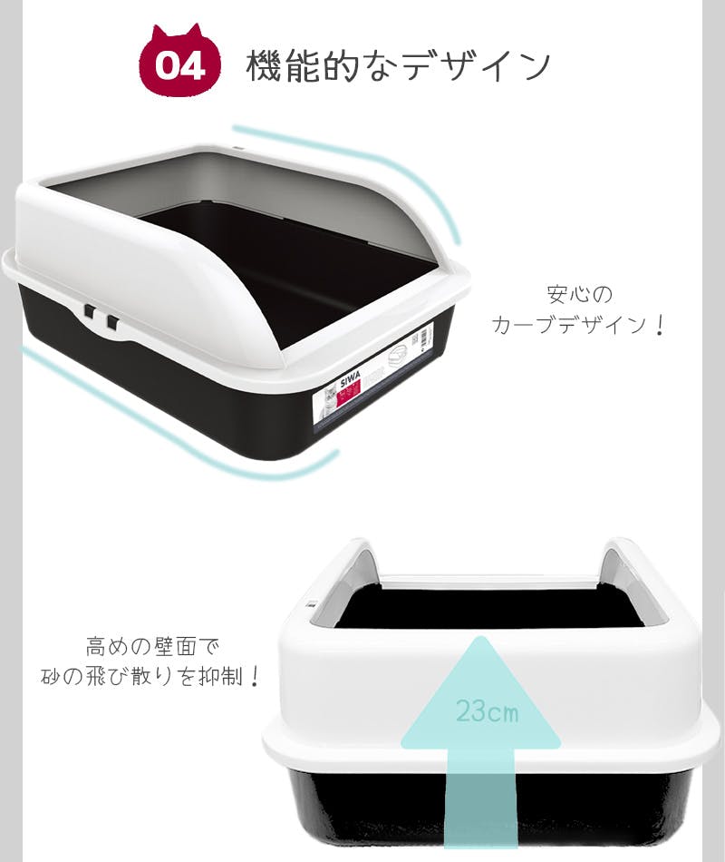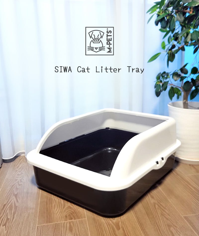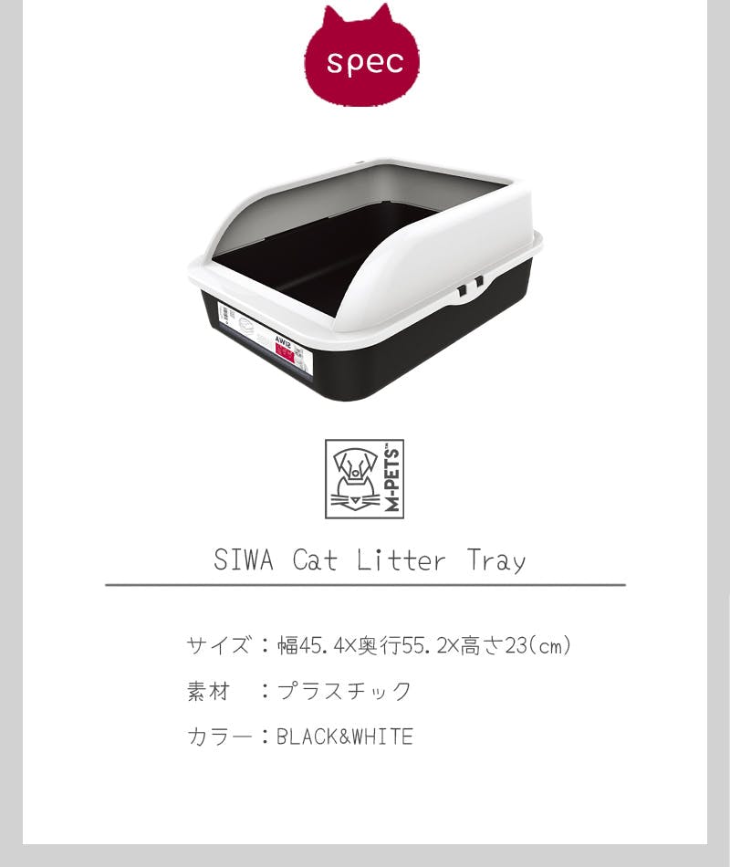 M-PETS SIWAキャットリタートレー L ブラック&ホワイト 猫用トイレ 大容量 飛散抑制 6953182709961【別送品】