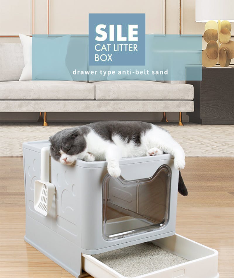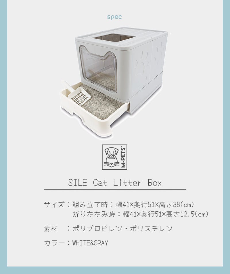 M-PETS SILEキャットリターボックス ホワイト&グレー 猫用トイレ 折りたたみ お掃除簡単 6953182738572【別送品】