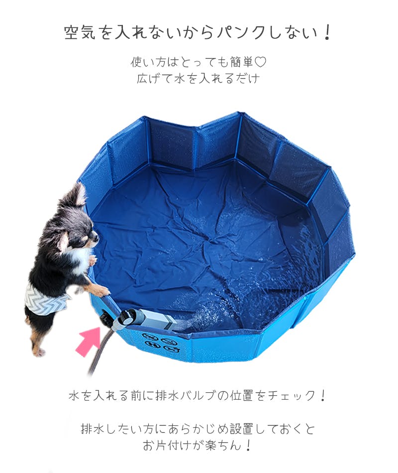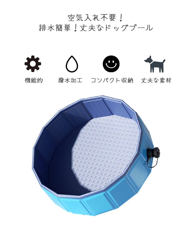 ・折りたたんでコンパクトに収納可能。・丈夫なMDF材が入った壁面を広げるだけ!空気入れ不要で、すぐに遊べる!面倒な準備や片付けの手間がなくラクチン!暑い夏の水遊びをストレスなく簡単に楽しめます!・内側は滑りにくいアンチスリップ加工の素材で安心。・排水ドレーン付きで、後片付けも簡単です。
