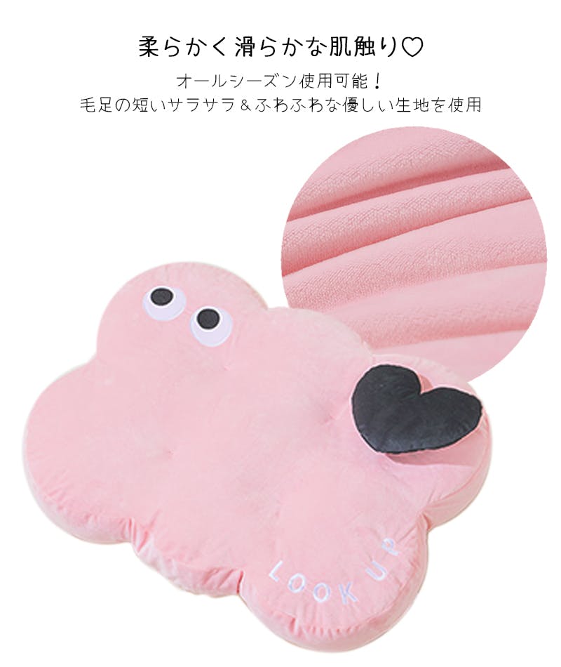 ・カラフルでポップなクッキーデザインのクッション。・クリクリのお目目がワンポイント。取り外し可能のモチーフは枕にもおもちゃにもなります。カラーによって枕のモチーフが違ってみんなかわいい。・弾力のある中綿がたっぷり入った寝心地のいいふわふわマットです。・毛足短めの肌触りの良いふわふわ生地を使用。オールシーズン使用可能です。