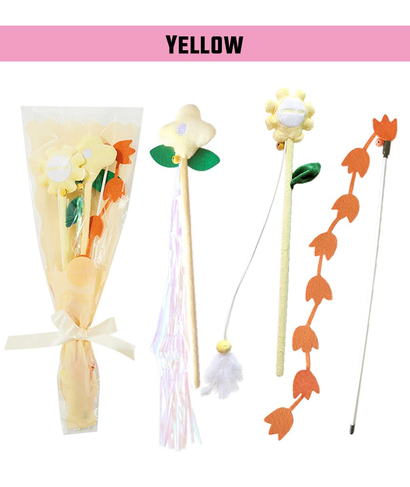 ・猫ちゃんが大好きな鈴やセロファン、羽が付いたかわいいお花デザインの猫じゃらしの3本セット。まるでブーケのようにデコレーションされた猫じゃらしは、プレゼントにもおすすめです。・カラーバリエーション豊富な5色展開。パープル・ピンク・ライトブルー・イエロー・レッドと好みに合わせてお選びいただけます。