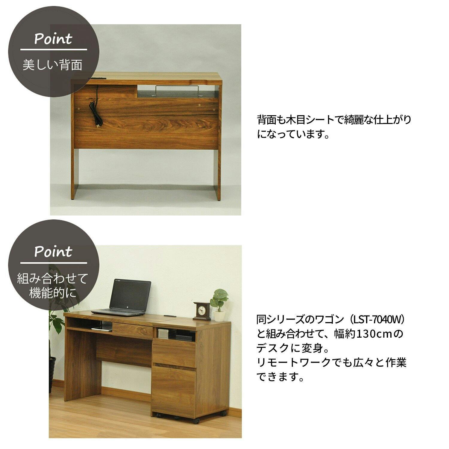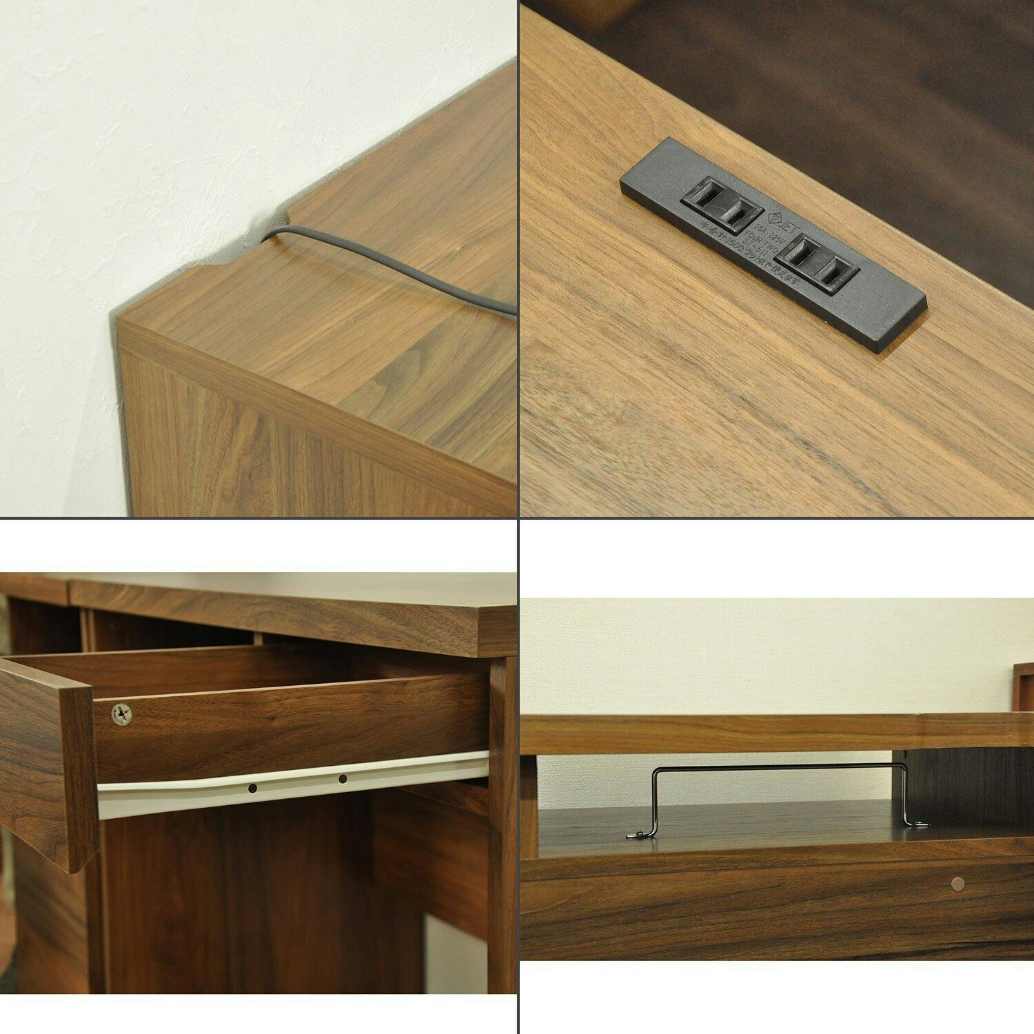 ●デスク 90の特徴●ウォールナットの木目や色味が和洋室にも相性が良く、北欧家具のようなシンプルモダンなデザインが高級感を増してくれます。●オープン棚と引出しの付いたシンプルなデスクです。●ストッパーの付いたオープンスペースにはPCやすぐに取り出しやすい物を置いたり、配線コードやタップ類を置いて落下防止にも大変役立ちます。