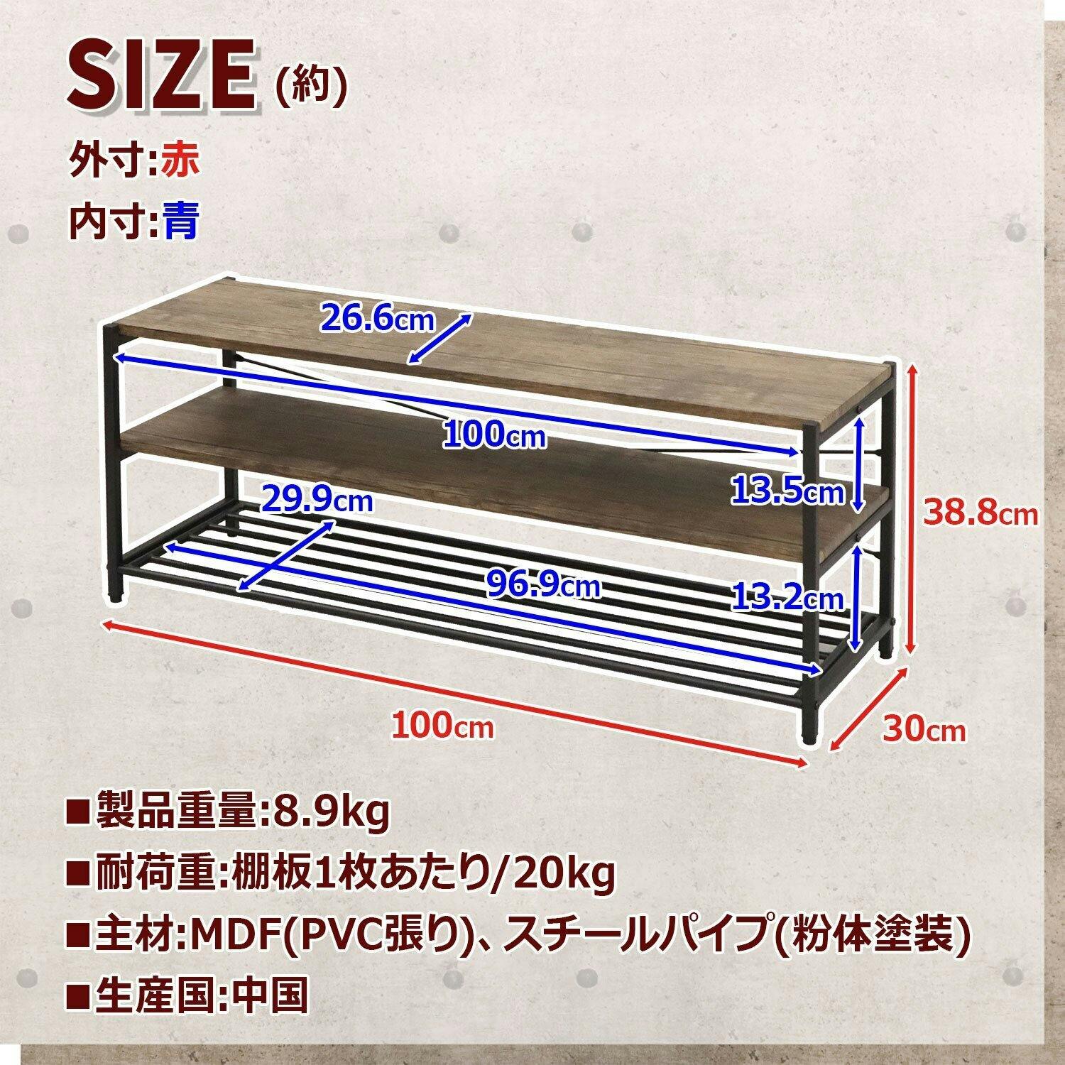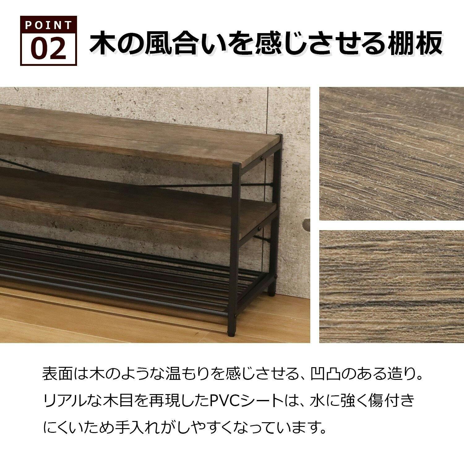●ヴィンテージ調の木目柄が美しい、落ち着きあるブラウン×ブラックのテレビボードです。●太いと重くなりがちなアイアン製ブラックフレームを細くして、お部屋に軽やかな印象を与えてくれます。●フレームはサビに強い粉体塗装を施しているため、キッチンなど水回りでのご使用にもオススメです。●棚板表面は木のような温もりを感じさせる、凹凸感のある造りです。