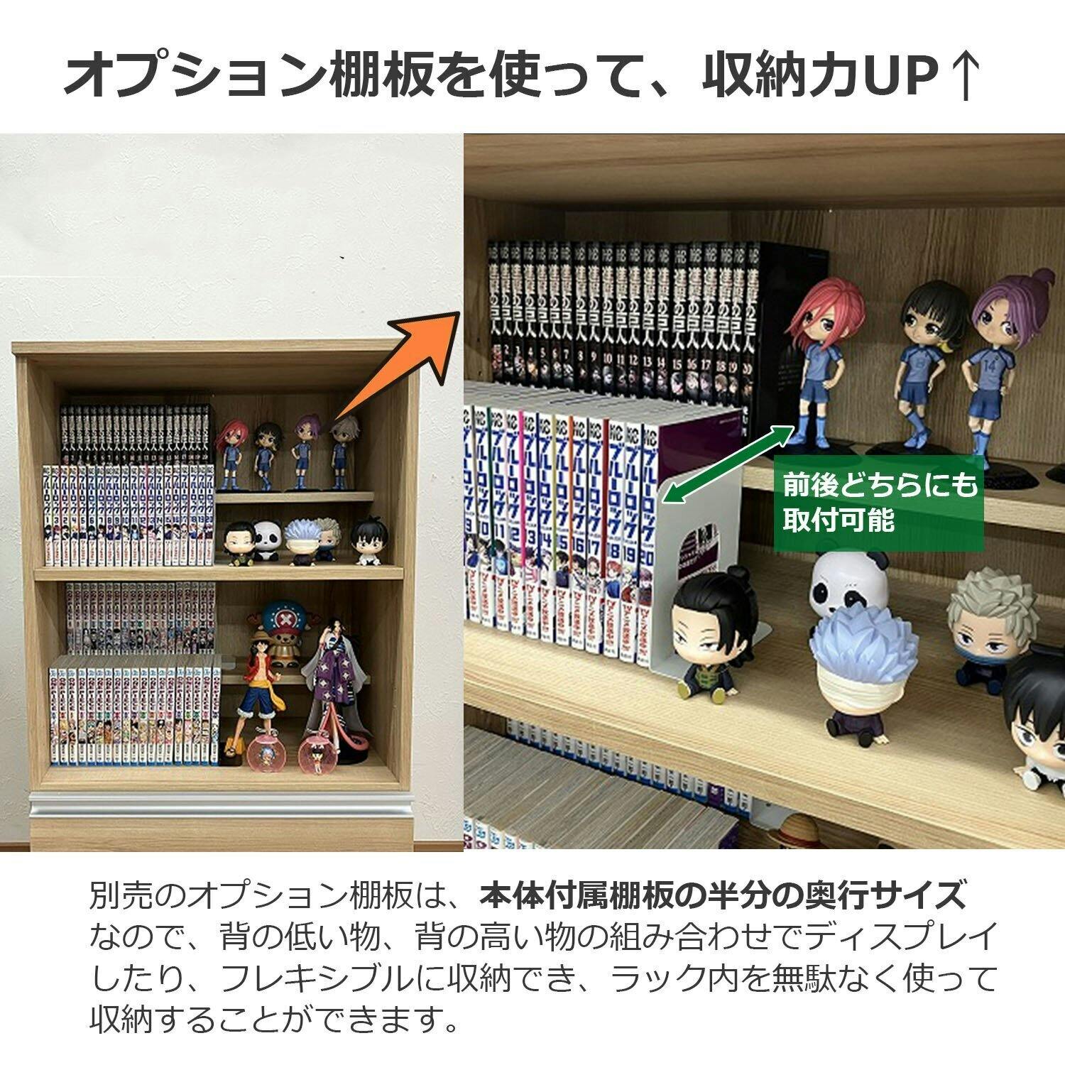 ●A4ファイルやカラーボックス収納に対応した収納ラックです。本体6サイズ+オプション12種を組み合わせて、自分好みの収納棚を作ることもできます。●カラーは落ち着いたシックな色合いのブラウン、自然な色味で様々なお部屋に合うナチュラルの2色です。●内寸奥行約35.8cmのラックは、ファイル・書籍・収納BOXなども納まるため、広い用途で大量収納ができます。