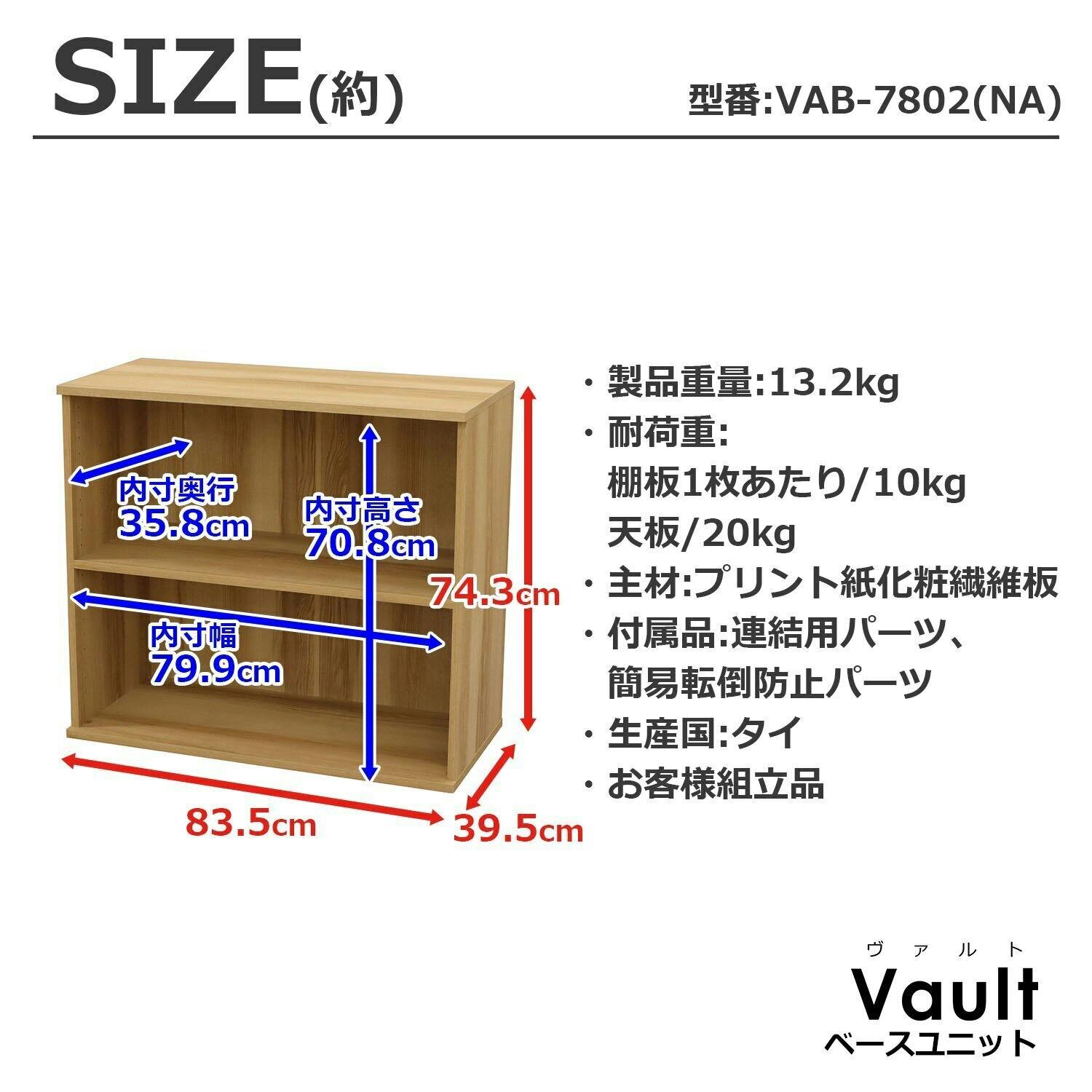 AIS エイアイエス ヴァルト ベースユニット7080ナチュラル 木製ラック 収納棚 リビング 寝室 事務所 子供部屋 本の収納 書類収納 学童用品の収納 木製 VAB-7802NA【別送品】