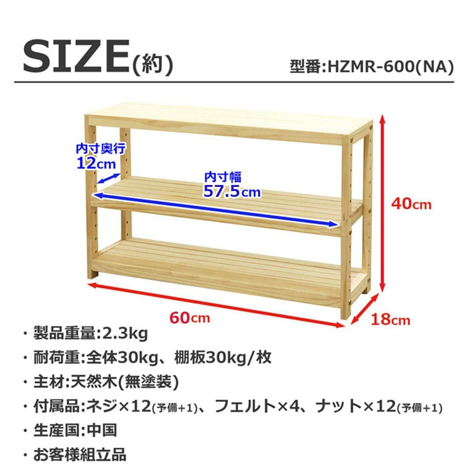 耐荷重(約):全体30kg、棚板10kg/枚 ※モニターの発色具合により、実際の色と異なる場合がございます。