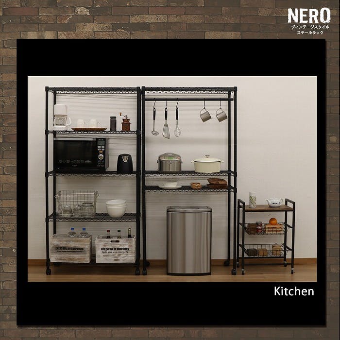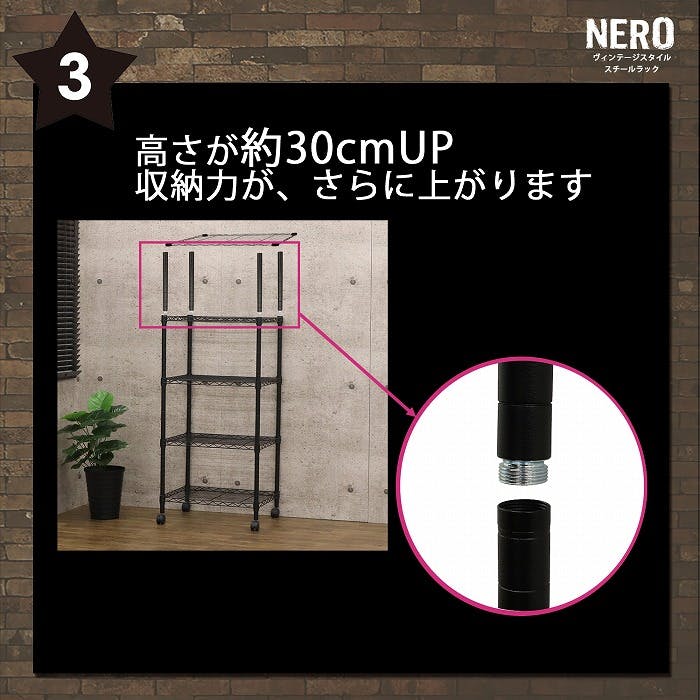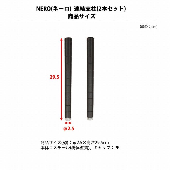 AIS エイアイエス 連結支柱2本セット マットブラック 追加支柱 メタルラック ワイヤーラック リビング キッチン ガレージ 本棚 観葉植物ラック 衣類収納 スチール NERO-300PU【別送品】