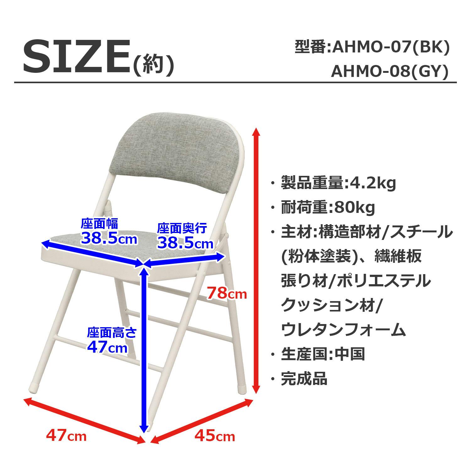 AIS エイアイエス 折畳ミーティングチェア グレー 座り心地の良い椅子 クッション性の高い椅子 リビング 会議室 事務所 ダイニング キッチン 店舗 収納に便利 隙間収納 座面が厚い リモートワーク スチール ファブリック AHMO-08【別送品】