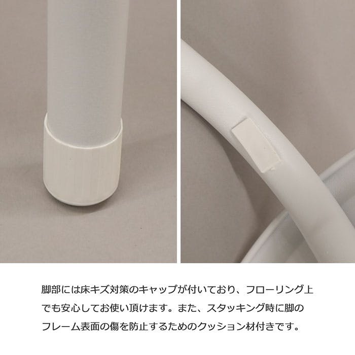 ●座面の高さは45cmで、立ち座りが楽な高さになっています。●スツールを最大10脚まで積み重ねることが可能です。使用しない時は積み重ね(スタッキング)をして、ちょっとした空きスペースへ収納することができます。●脚部には床傷対策のキャップが付いています。●スタッキング時に脚フレーム表面の傷を防止するためのクッション材付きです。●座面の素材は、サラッとした肌触りのポリエステル素材。