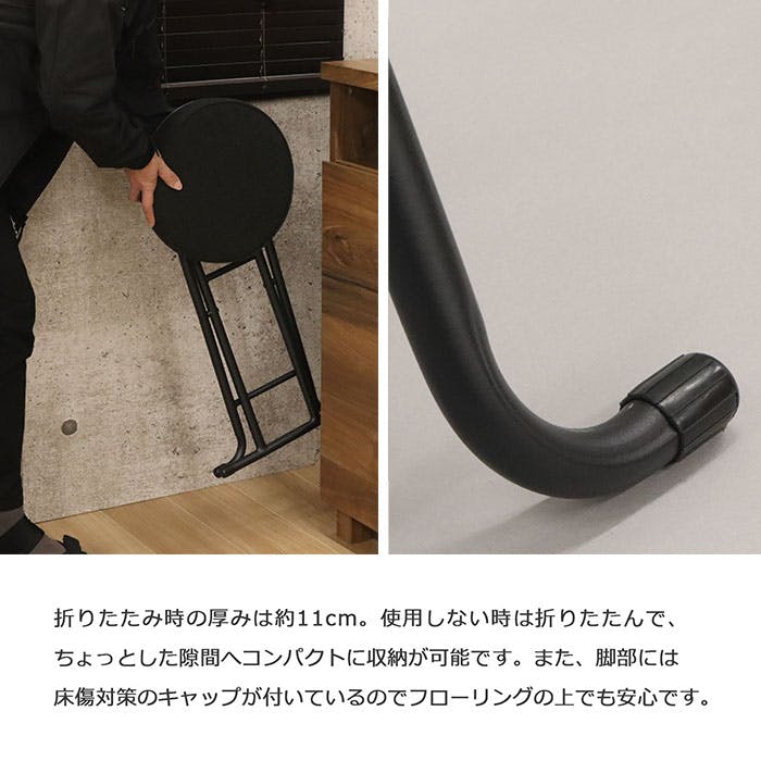 AIS エイアイエス 折畳座厚チェア(背なし)ブラック 座り心地の良い椅子 クッション性の高い椅子 リビング 会議室 事務所 ダイニング キッチン 店舗 収納に便利 隙間収納 座面が厚い リモートワーク スチール ファブリック YSTN-03【別送品】