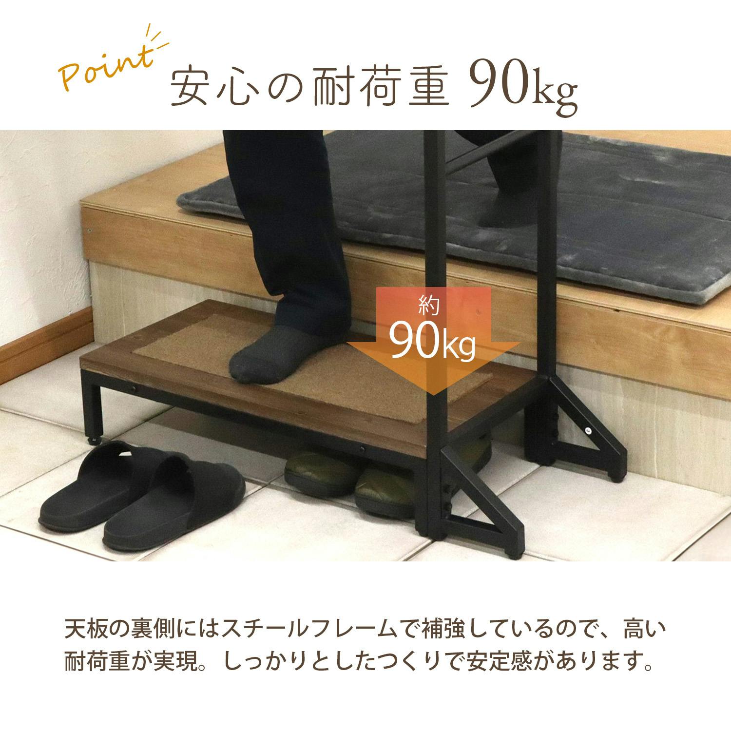 ●マット付きになり、すべりにくく、さらに使いやすくなりました!●年配の方や小さなお子様がいるご家庭でも、安心して玄関の昇り降りができます。●天板上のマットは厚さ4mm。寒い時期でもヒヤッとしません。●マット裏はゴム製で滑りにくくなっており、安全にお使いいただけます。●天板下には靴やスリッパなどを2足ほど収納できるので、玄関スペースを有効活用できます(内寸幅55.5cm)。●耐荷重は90kg。