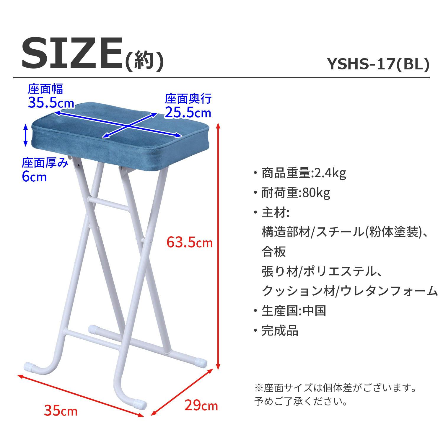 AIS エイアイエス 折畳ハイスツール ブルー 座面が高い椅子 ハイタイプチェア リビング ダイニング キッチン 店舗 収納に便利 隙間収納 スチール ファブリック YSHS-17【別送品】