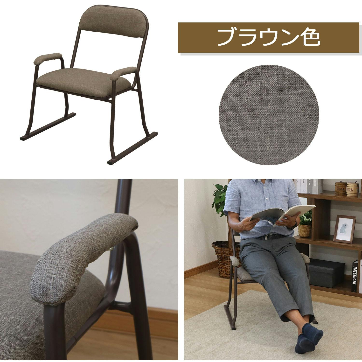 AIS エイアイエス 楽座椅子・ハイタイプ ブラウン 4脚セット ハイチェア 立ち上がりに便利な椅子 リビング 和室 客間 ダイニング 収納に便利 ゆったり座れる スチール PVC RCH-600 BRx4PCS【別送品】