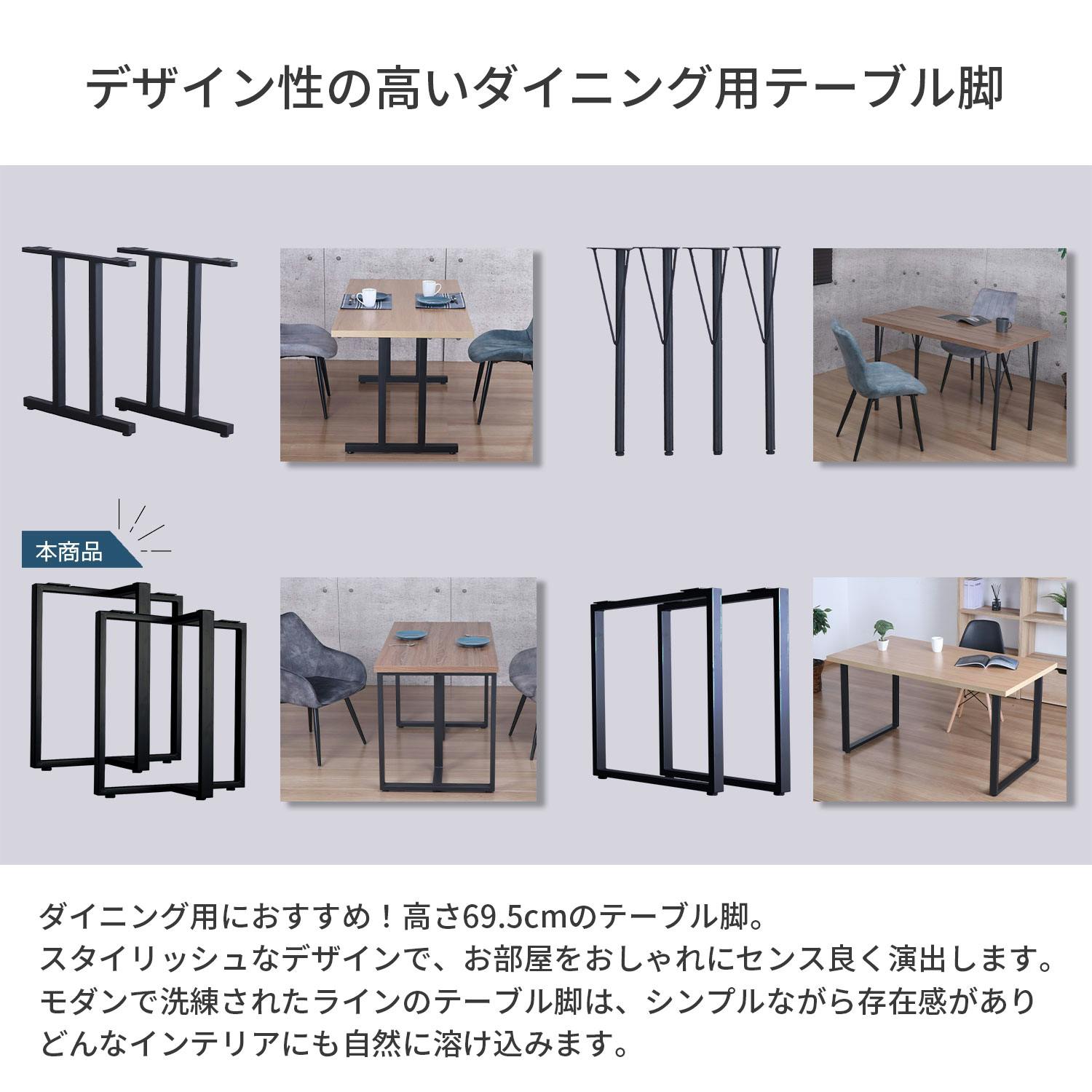 ●テーブル用天板に取り付けて脚として使用できる、T字型のテーブル脚2本セットです。●別売りの天板やお手持ちの天板を取り付けて、オリジナルのテーブルを作ることができます。●脚の高さは69.5cmのミドルタイプ。ダイニングテーブルなどを作るのにおススメです。●天板と床に接地する面がT字型でしっかりと天板を支えるので、安定感抜群!●脚先のアジャスターでガタ付きを調整できます。