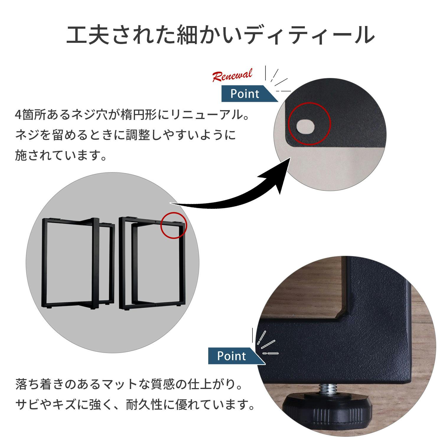 ●モニターの発色具合により、実際の色と異なる場合がございます。●天板の形状・脚の取付箇所・ネジの長さによって、耐荷重は前後しますのでご了承ください。●ドライバーとボルト(ネジ)は付属しておりません。あらかじめご用意をお願いいたします。