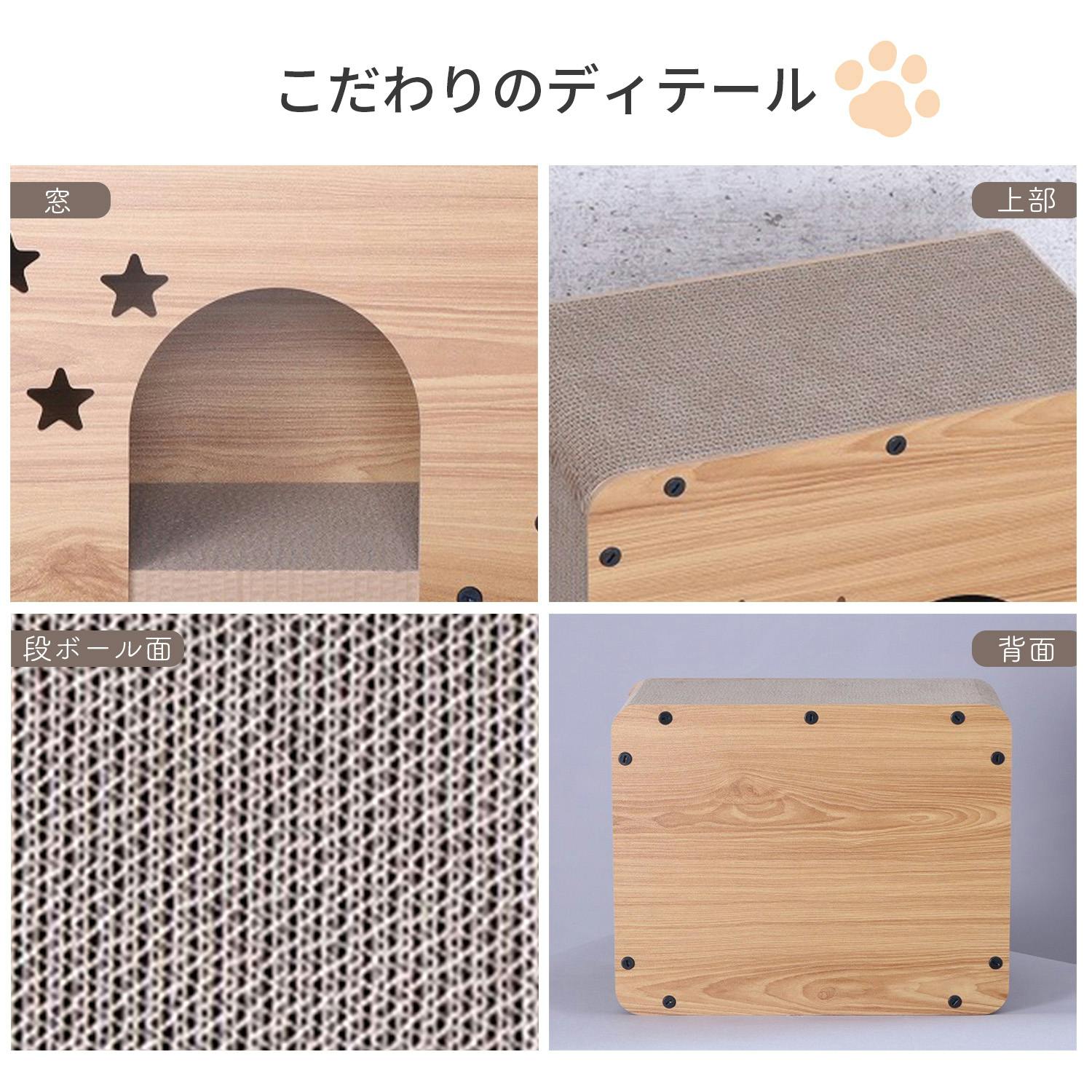●猫ちゃんがリラックスしながら快適に過ごすことができる、おしゃれなシンプルデザインのキャットハウスです。●ハウスの上部・側面・内部・底面のいずれの場所でも、猫ちゃんのお気に入りの場所で爪とぎすることができます。●耐久性に優れた高品質な段ボールを使用。摩擦に強い設計で、爪とぎをしても紙くずが出にくい仕様です。●お部屋のインテリアに馴染んで、インテリアとしても楽しめるアイテムです。