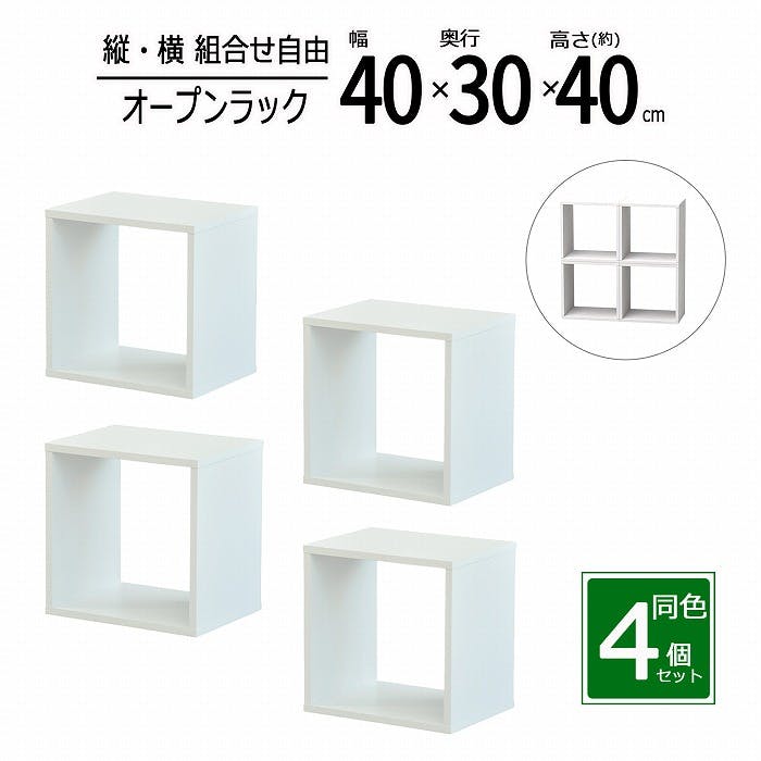 AIS エイアイエス オープンラックシステム400×300×400×4セット オークホワイト 木製ラック 収納棚 リビング 子供部屋 事務所 小物収納 書類整理 キッチン収納 組み立て簡単 木製 OPR-4040x4pcs OKWH【別送品】