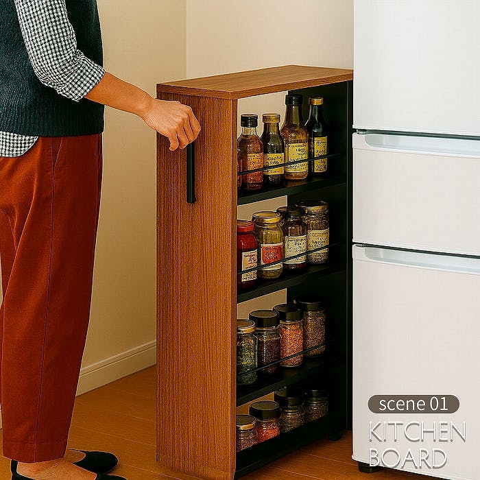 移動式収納庫, キッチン リビング 書斎, 調味料ストック 食品ストック キッチン用品 木製
