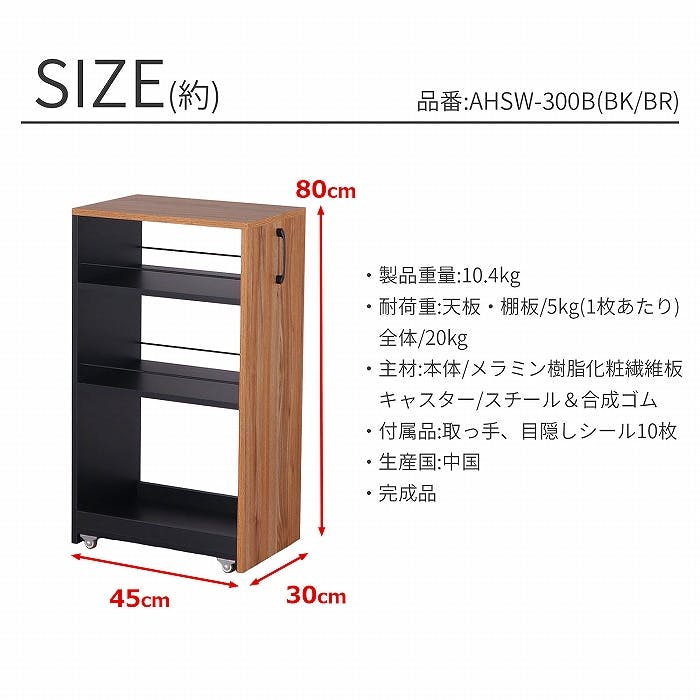 AIS 隙間ワゴン300(下棚)ブラック ブラウン 30×45×80cm AHSW-300B BK BR 移動式収納庫 キッチン リビング 書斎 調味料ストック 食品ストック キッチン用品 木製 4932528027022【別送品】
