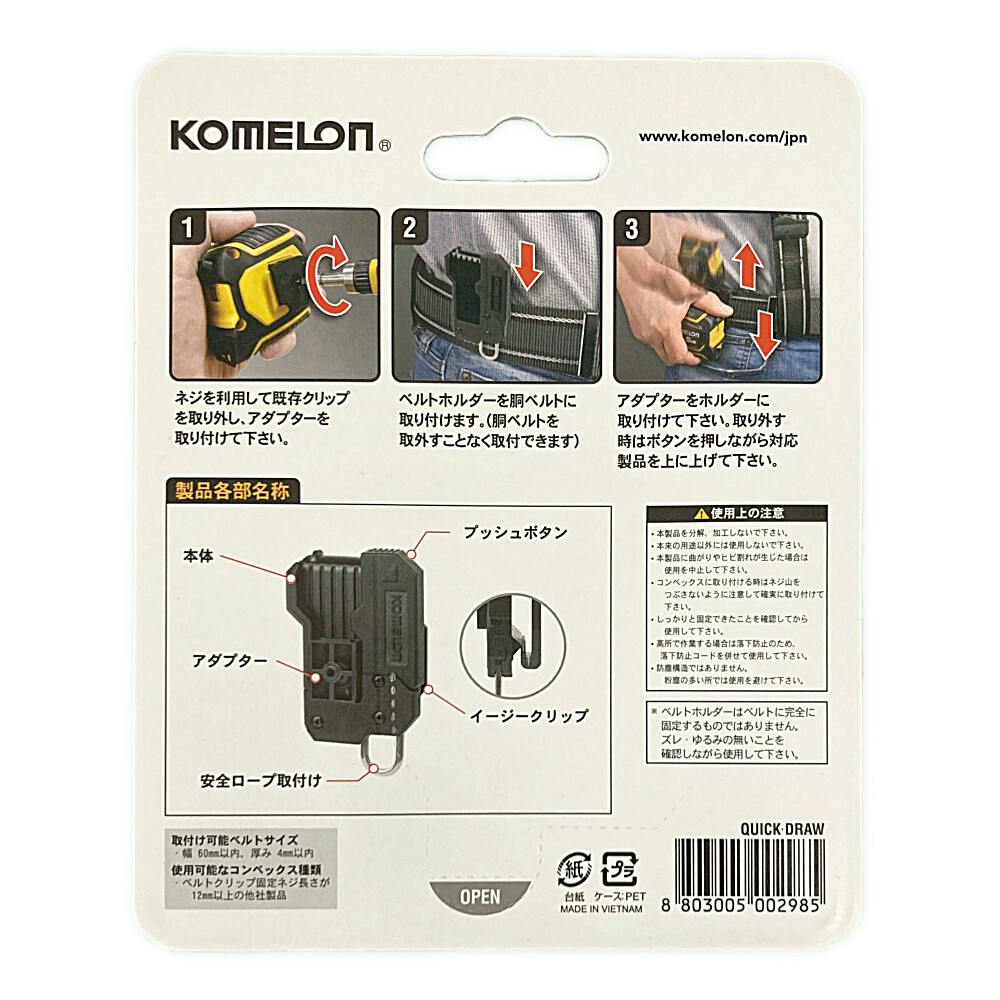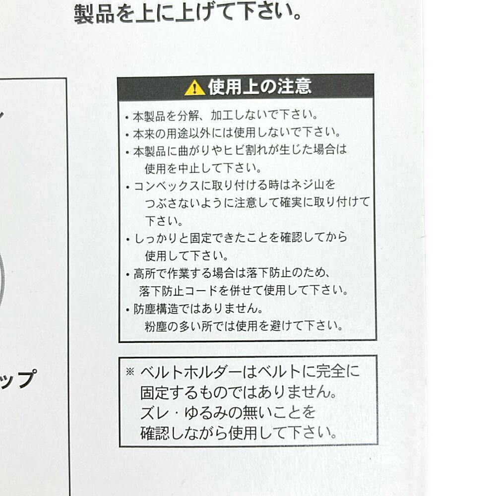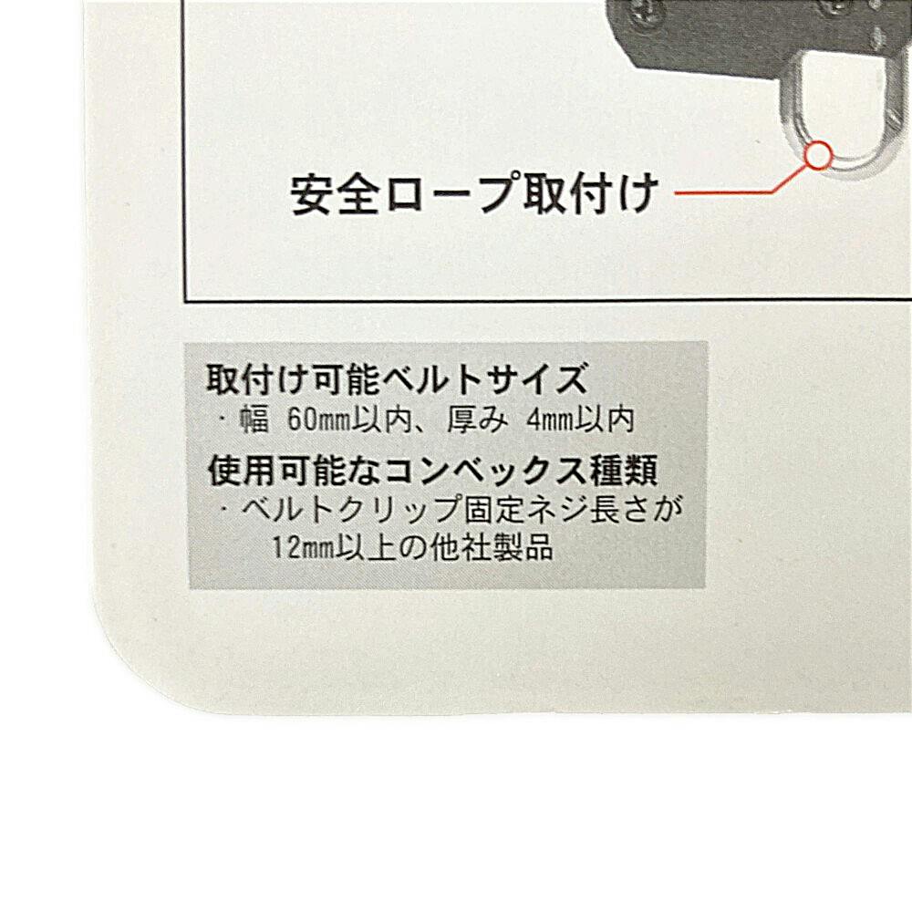 ●着脱はスライド式解除ボタンを採用し、柔らかくスムーズな着脱が可能です。●ベルトへの装着は上から差し込むタイプのため、ベルトの途中部分から装着可能です。●コンベックス側に取り付ける専用アダプターが2個入りです(スペア用)。
