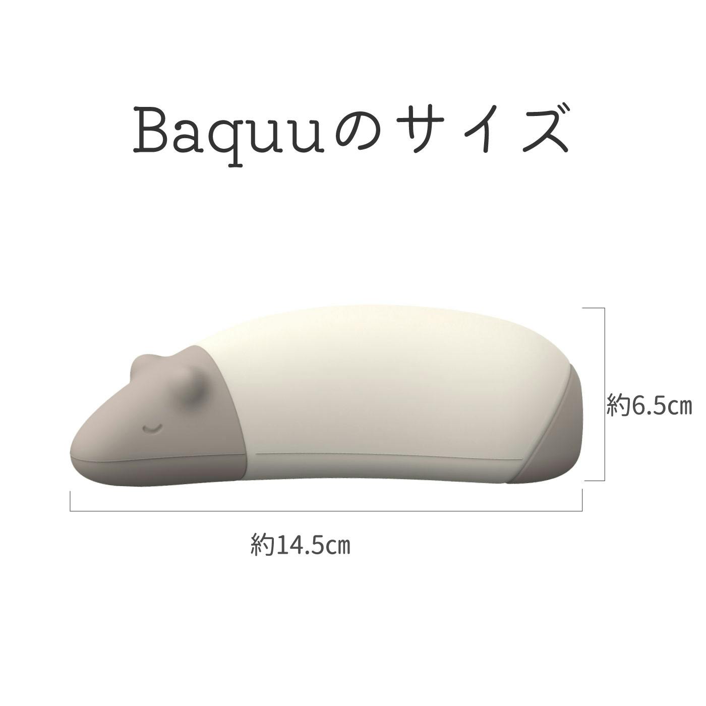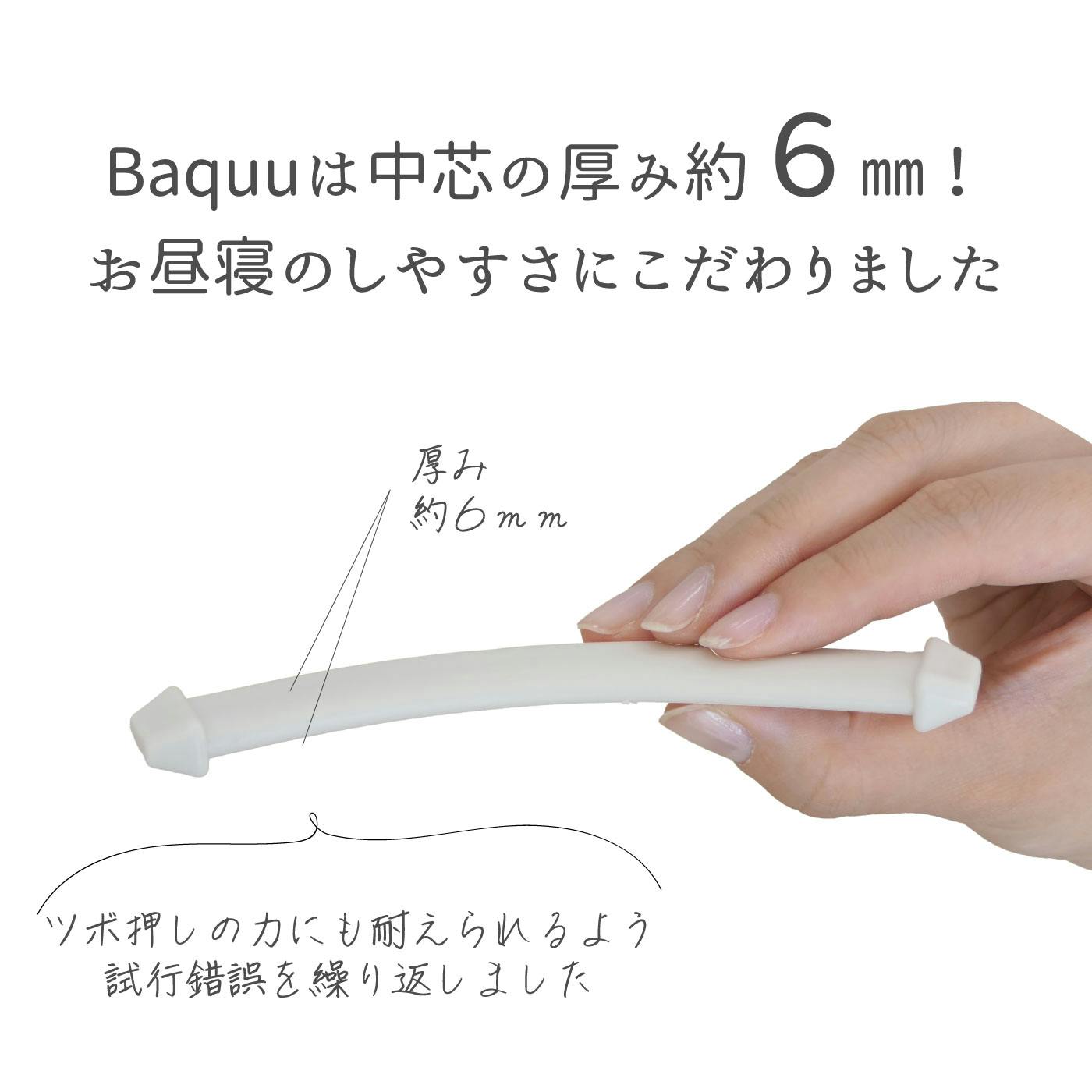 (1)ずっと握っていたい触感Baquuの体は握り心地のいいウレタンで頭と足はツボ押しにちょうど良い固さのシリコンでできています。(2)寝心地にもこだわりを寝具メーカーだからこそ、寝心地にもこだわりました。Baquuをつなぐ中芯は厚さ約6mmでできているため中芯が顔に当たることがなく、お昼寝を快適にサポート(3)使い方色々お昼寝、ツボ押し、握ってストレス解消、スマホスタンドなど様々な場面で使えます。