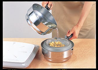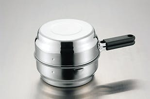 オールインワン仕様のかしこい揚げ物鍋です。片方の鍋で揚げて、使用後はもう一つの鍋で油を保管することができるオールインワン仕様。油切りができる便利な揚げアミ付。揚げごろ・適温も一目でわかる温度計付き。収納時:約360×225×170mm(1350g・1000ml)