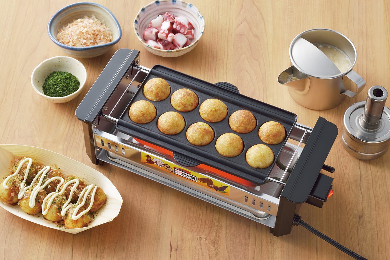 付属のプレートでタコ焼きも焼くこともできます。約382×146×106mm(約1205g)