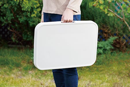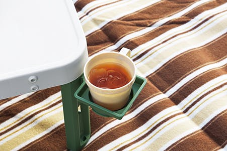 樹脂製のためとっても軽量。片手でラクラク持ち運べる重さです。簡単に組み立て&収納ができるため必要な時だけ取り出してもOK。テーブルの天板裏に脚・コップスタンドなどすべての部品が収まるので部品を無くしにくいです。屋外でレジャー活動や運動会、お花見などの簡易テーブルに。脚部にペグが収納されているので、芝生や砂地にテーブルを固定して安定させることができます。