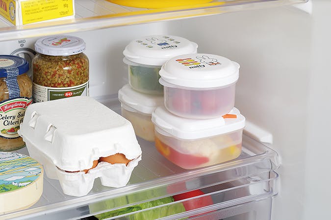 蓋をしたままレンジにかけられるので、ラップをする手間がいりません。また、冷蔵庫内で積み重ねて保管できるのでスッキリとさせられます。容器は半透明なので保存した内容が確認しやすい。電子レンジ可。丸型:約φ94×61mm(55g・270ml)