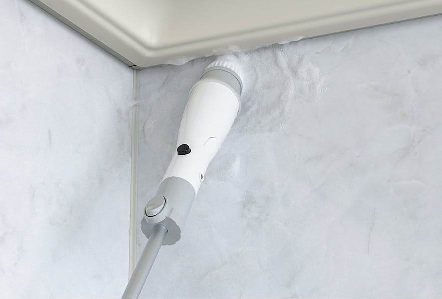 ABS樹脂・アルミニウム・ナイロン、機能:ノズル角度 ストレート&45°、バッテリー:2,200mAh、回転数:500RPM、バッテリー種類:リチウムイオン、持続時間:40分間、充電時間:3.5~4時間、コードの長さ:約1.1m、付属ブラシ:大円ブラシ・デッキブラシ・コーナーブラシ 中国製